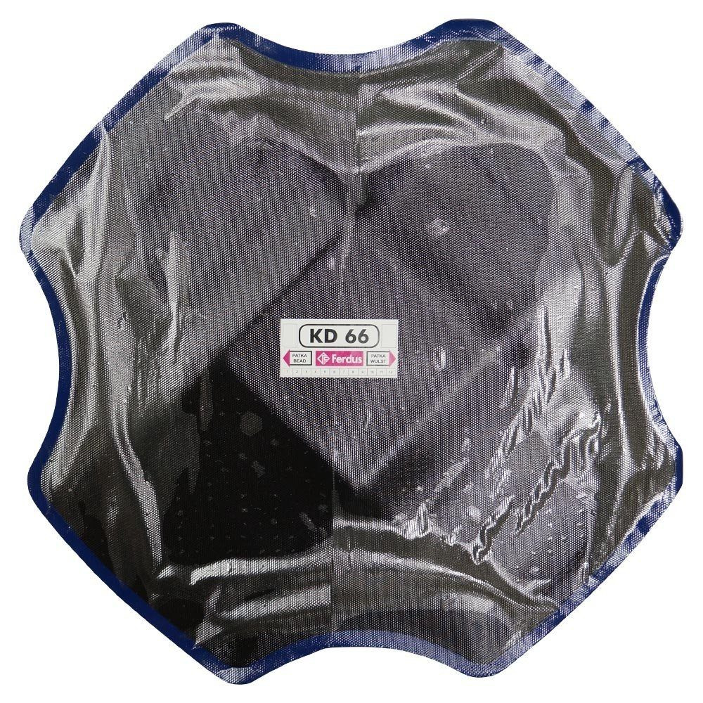Gumijavító folt diagonális gumiabroncsokhoz KD 66, futófelület javításához. Hideg és 155°C-ig meleg vulkanizáláshoz. Méret: 295x295mm.