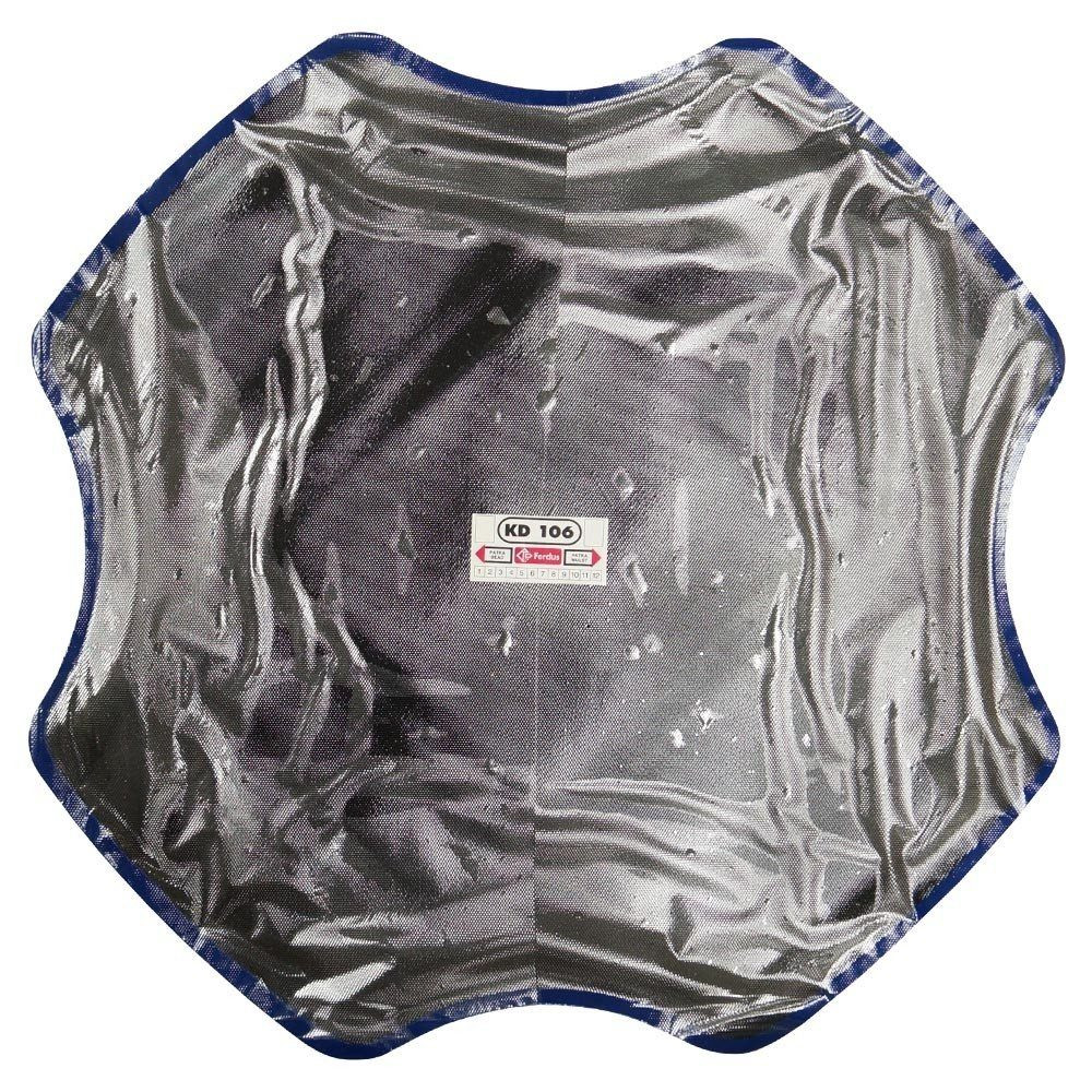 Gumijavító folt diagonális gumiabroncsokhoz KD 106, futófelület javításához. Hideg és 155°C-ig meleg vulkanizáláshoz. Méret: 395x395mm.