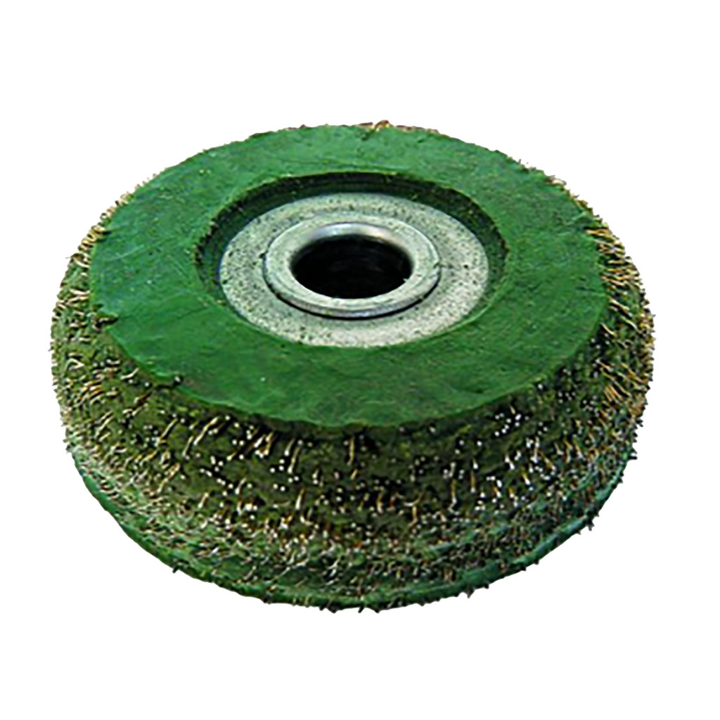 A 76 x 20 x 14 mm-es átmérőkkel rendelkező, műgyanta bevonatú drótkorong minden típusú gumiabroncs belső oldalán történő érdesítésre szolgál. Furat átmérője: 14mm. Ajánlott max. fordulatszám 2800ford/perc. Tökéletes megoldás a tömör teherautó abroncsok látható acélzsinórjaihoz és szövet szálaihoz. Használható: 8mm-es fúrótokmánnyal, NV 11 hatszögletű M14-es menetű szerszámtartóval, MK 1-es szárral.