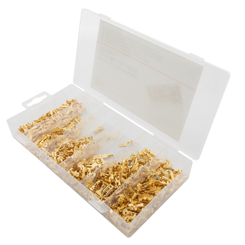 • 600 darabos szigeteletlen csatlakozókészlet – Apa és anya csatlakozókkal különböző méretekben