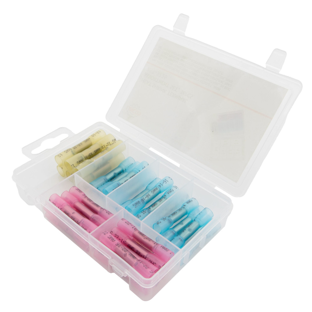 Minden csatlakozó hőre zsugorodó anyagból készült, és elektrolitikusan bevont rézmagot tartalmaz, amely kiváló vezetőképességet és tartósságot biztosít. Az áttetsző kialakítás lehetővé teszi a krimpelt csatlakozás vizuális ellenőrzését a zsugorítás előtt. Melegítés után a saru vízálló, nedvességálló és sóálló tömítést hoz létre, amely megvédi a vezetékeket a korróziótól és az időjárási hatásoktól.