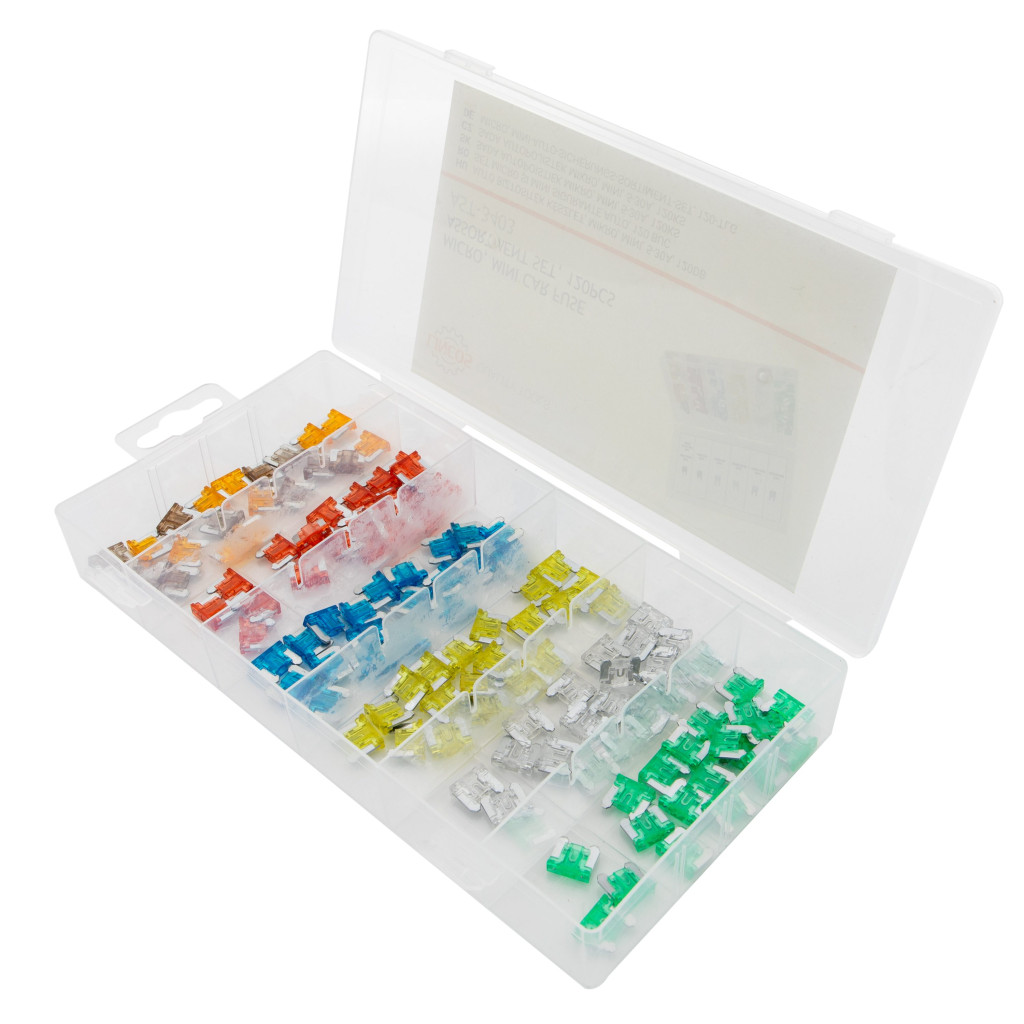 • 120 darabos autóbiztosíték készlet – Hat különböző áramerősség 5A és 30A között