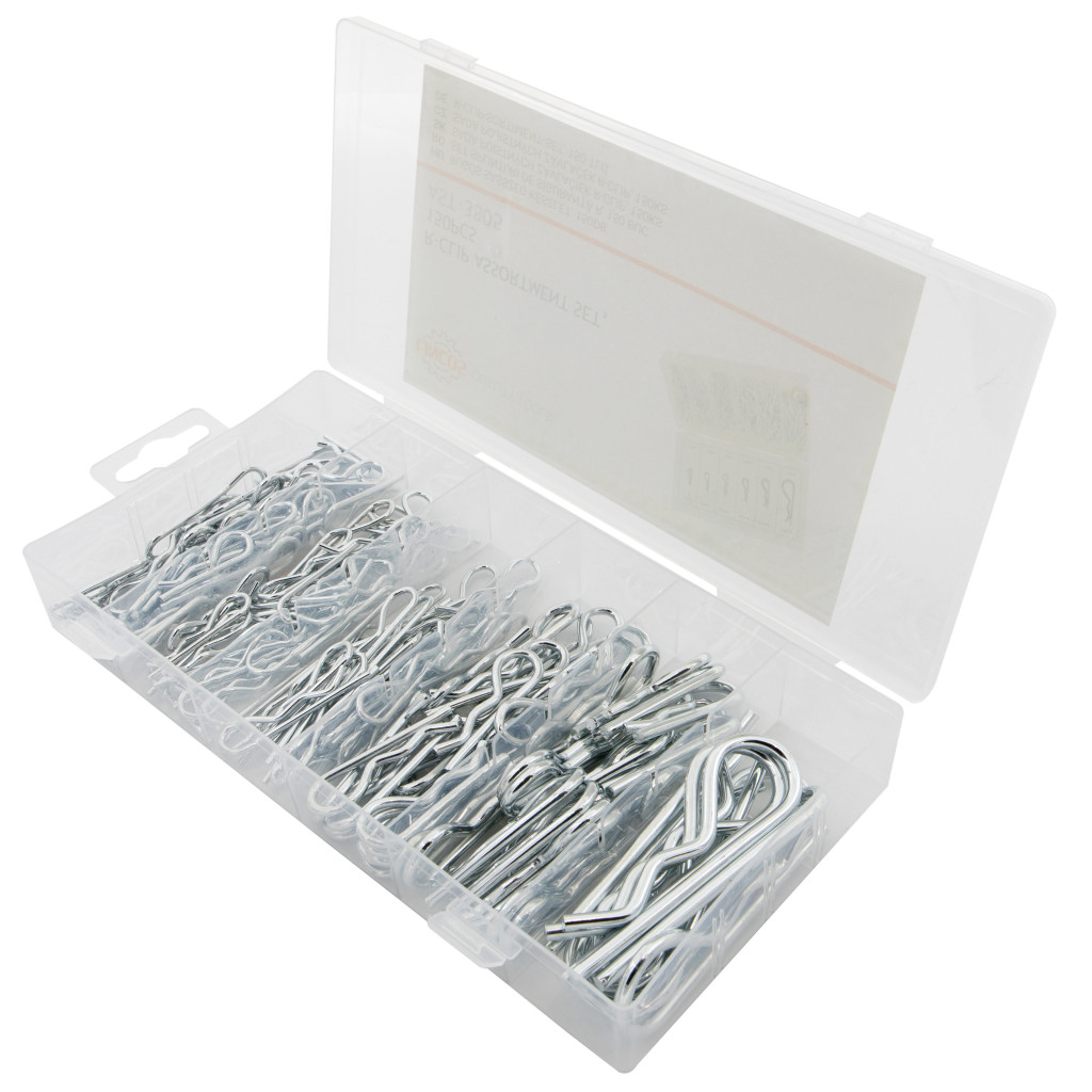 Ez a 150 darabos R-biztosító készlet tökéletes tengelyek, biztosítótüskék és mechanikai alkatrészek rögzítésére. A készlet hat különböző méretű biztosítót tartalmaz, így autószerelők, mezőgazdasági gépek kezelői és ipari felhasználók számára is kiváló választás.