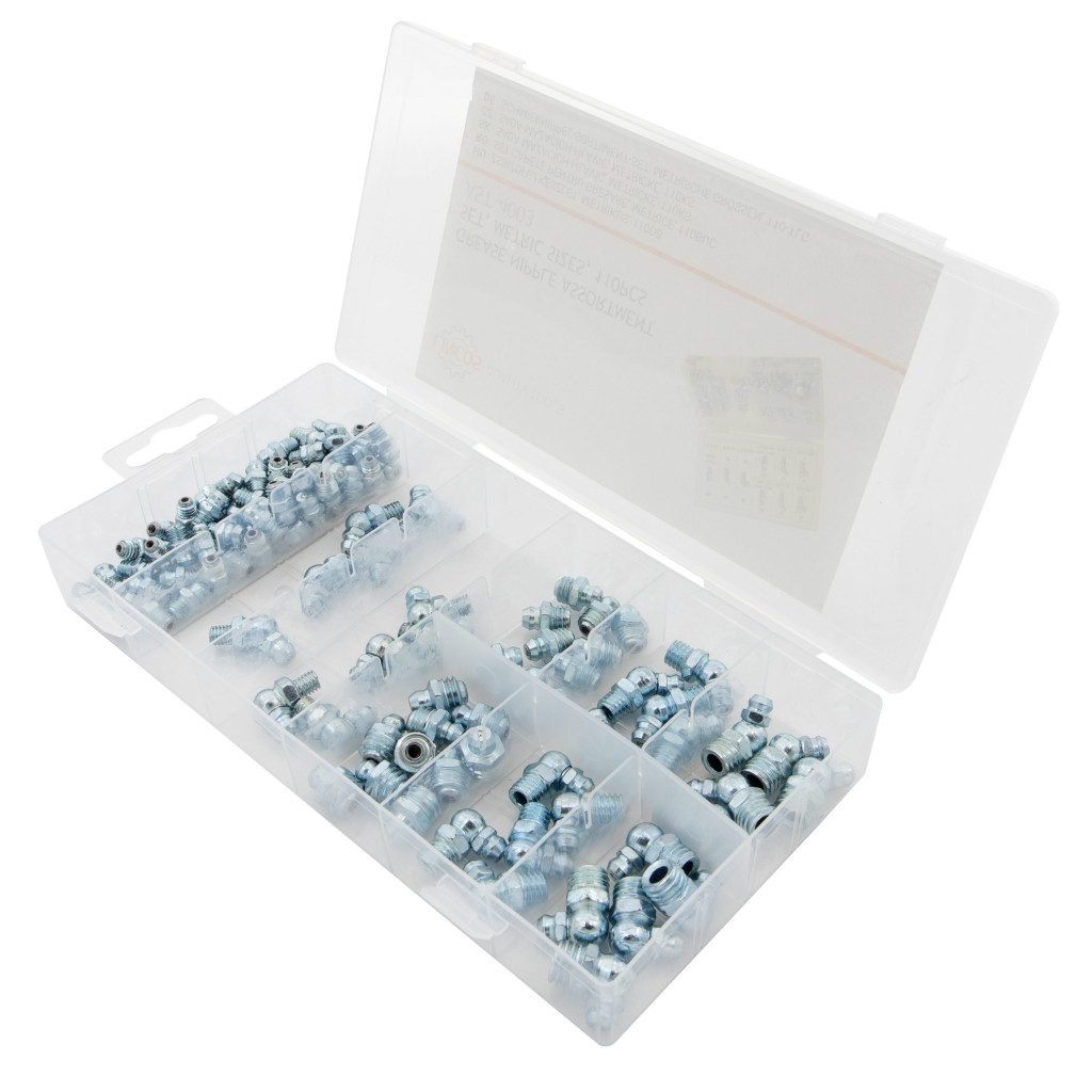 • 110 darabos zsírzógomb készlet – Tartalmaz M6, M8 és M10 méretű zsírzószemeket