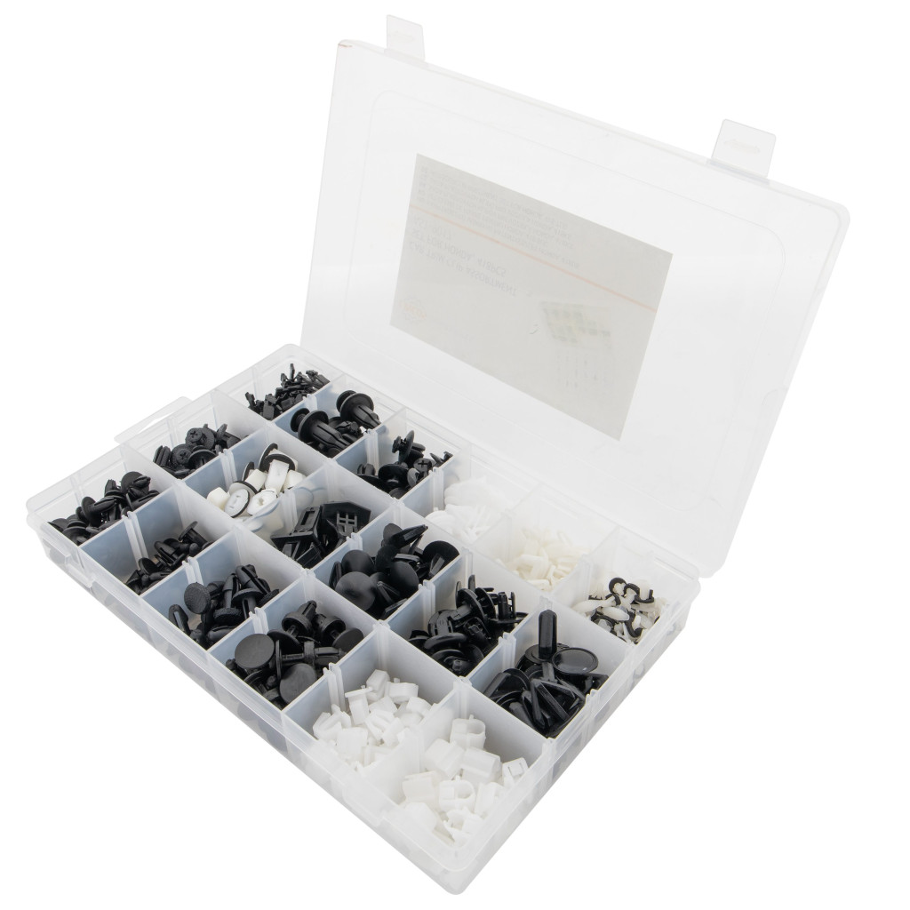 A készlet különböző rögzítő elemeket tartalmaz a belső és külső szerelésekhez, így ideális autójavításhoz, cseréhez és helyreállításhoz . Tárolótáskában érkezik az egyszerű rendszerezés és gyors hozzáférés érdekében.