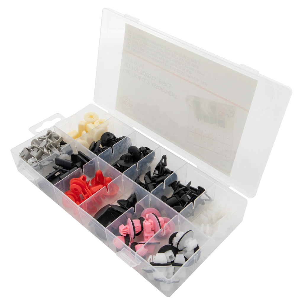 A készlet gyári specifikációjú OE típusú rögzítőelemeket tartalmaz, így tökéletes választás autószerelők és karosszériajavítók számára.