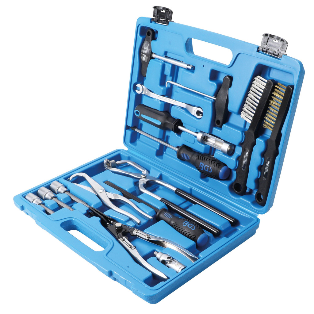 Ez a 15 darabos fékjavító és szerelő készlet teljes körű megoldást kínál dob- és tárcsafék rendszerek javításához. A készlet speciálisan kialakított szerszámokat tartalmaz, amelyek lehetővé teszik a fékalkatrészek szétszerelését, tisztítását, beállítását és összeszerelését.