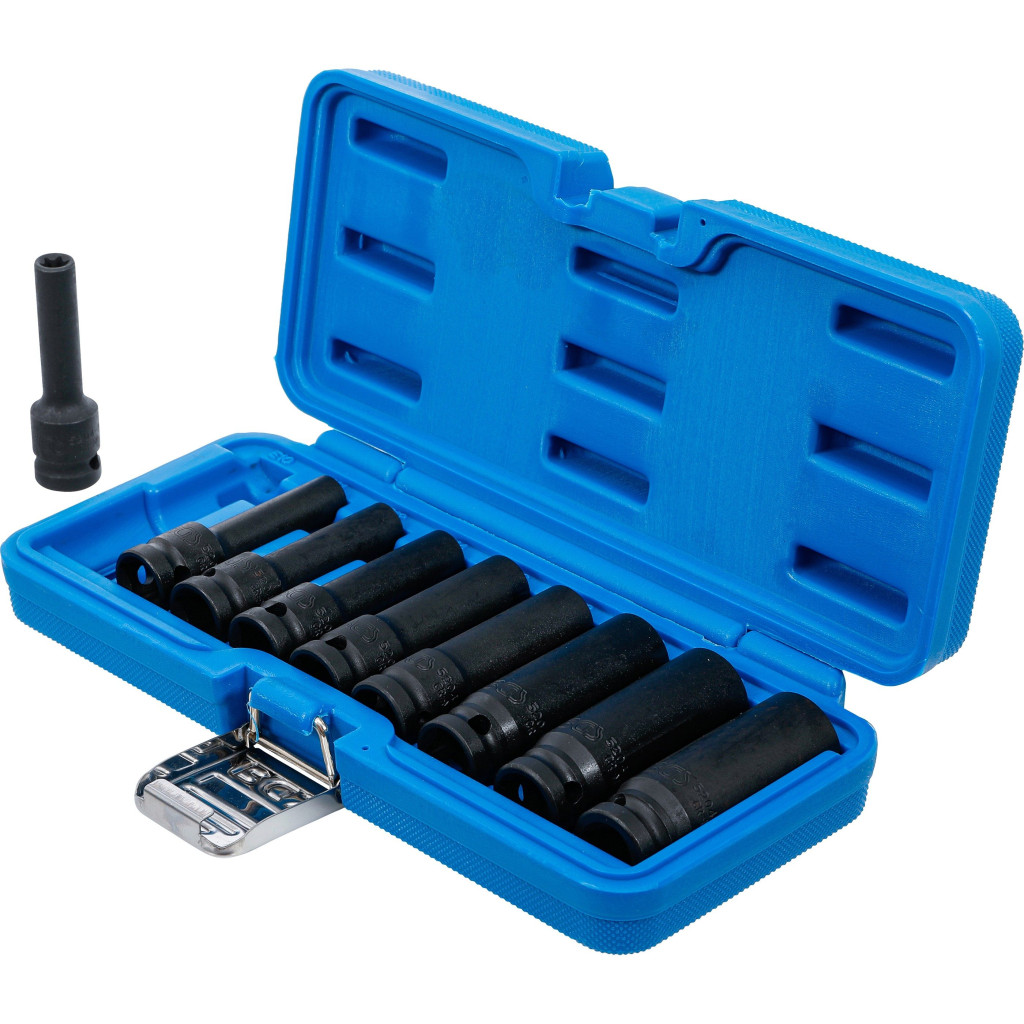 Ez a professzionális használatra tervezett 9 darabos hosszított dugókulcs készlet kézi és pneumatikus légkulcsokkal egyaránt kompatibilis. A készlet E10-től E24-ig terjedő E-profilú fejeket tartalmaz, 12.5mm-es (1/2") belső négyszög meghajtással. Tartós króm-molibdén acélból készült, ami biztosítja a nagy teljesítményt és hosszú élettartamot.