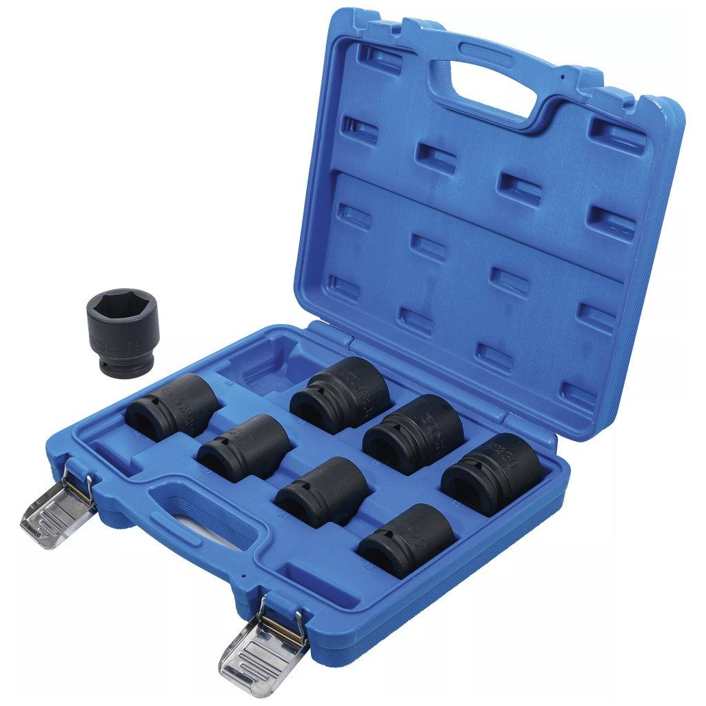 Ez a 8 darabos rövid ütvecsavarozó dugókulcs készlet ideális professzionális használatra kézi és pneumatikus vagy elektromos ütvecsavarozókhoz. Az eszközök 20mm-es (3/4") belső négyszög meghajtással és hatszögű profillal rendelkeznek, amelyek stabil csatlakozást biztosítanak nagy nyomatékú alkalmazások közben.