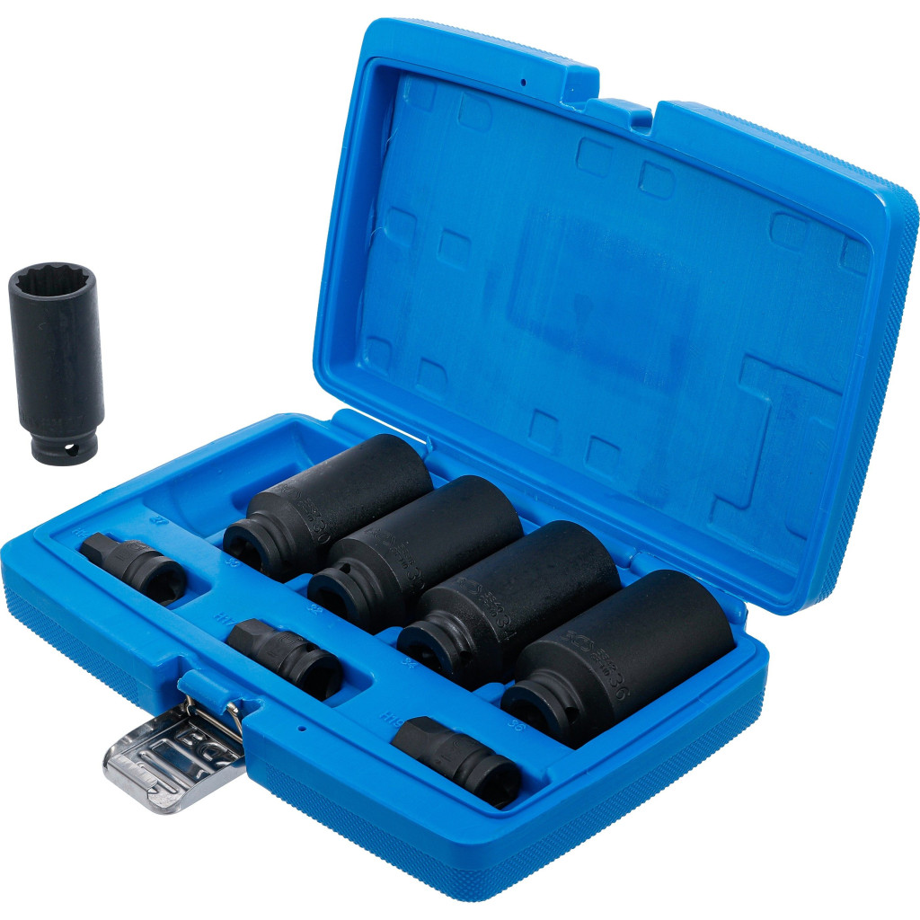 Ez a 8 részes féltengely dugókulcs készlet kifejezetten az autó hajtásláncának szervizeléséhez készült, beleértve a tengelycsavarok és CV-csukló rögzítőelemek szerelését. Az összes dugókulcs 12,5mm-es (1/2") meghajtással rendelkezik és rögzítőgolyó számára kialakított horonnyal és furattal van ellátva, így ütvecsavarozóval vagy kézi használat során biztonságos, stabil csatlakozást nyújt.