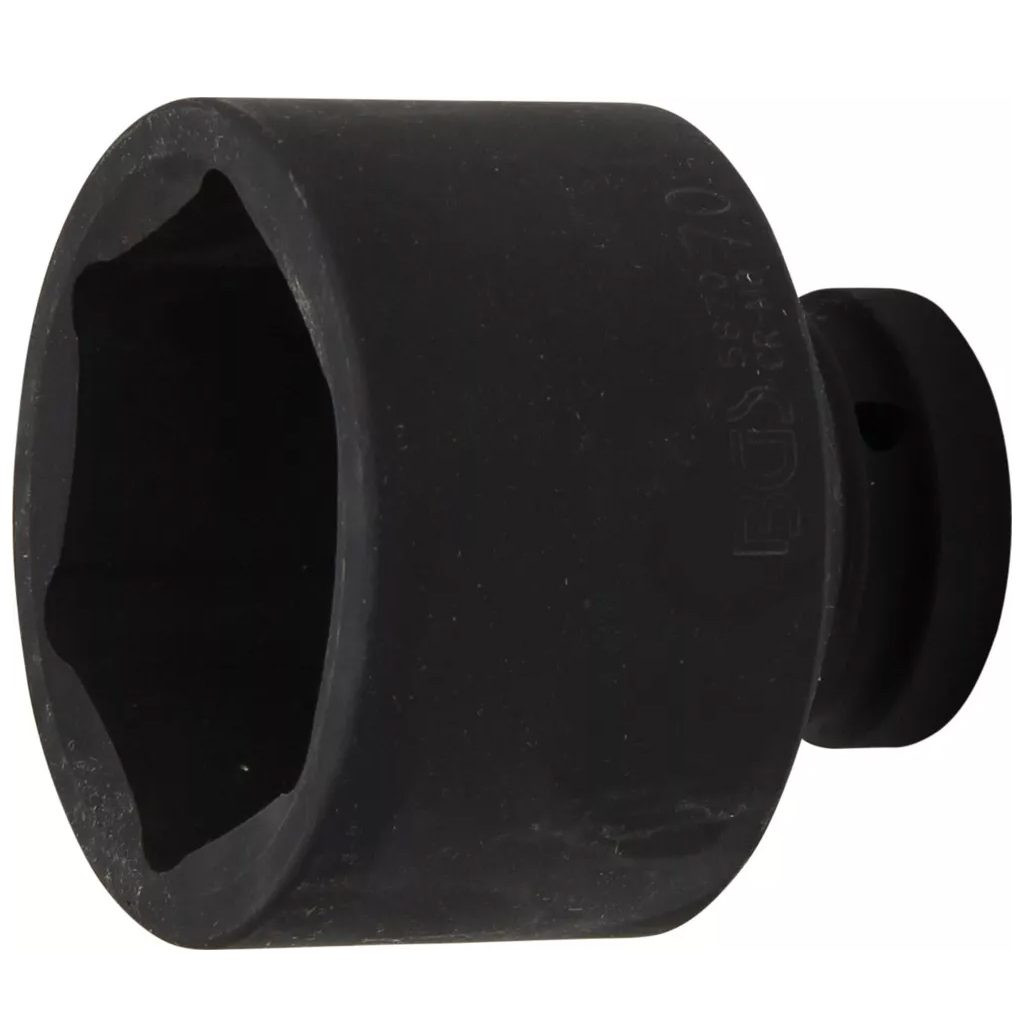 Ez a 70mm-es hatszögletű ütvecsavarozó dugókulcs ideális választás nagy nyomatékú kézi és gépi (ütvecsavarozós) munkákhoz. A 1"-os meghajtású (25mm) belső négyszög csatlakozó és a hatszög profil megbízható illeszkedést és nyomatékátvitelt biztosít, különösen nagy méretű rögzítőelemek esetén.