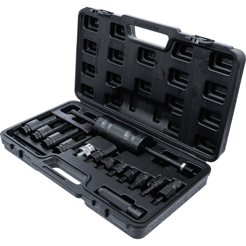 A 14 darabos CDI injektor kihúzó készlet lehetővé teszi a dízel befecskendezők gyors és kíméletes eltávolítását, még nehezen hozzáférhető vagy beragadt állapotban is. A gömbcsuklós adapter lehetőséget ad a csúszókalapács használatára szűk helyeken, ahol a közvetlen hozzáférés korlátozott.
