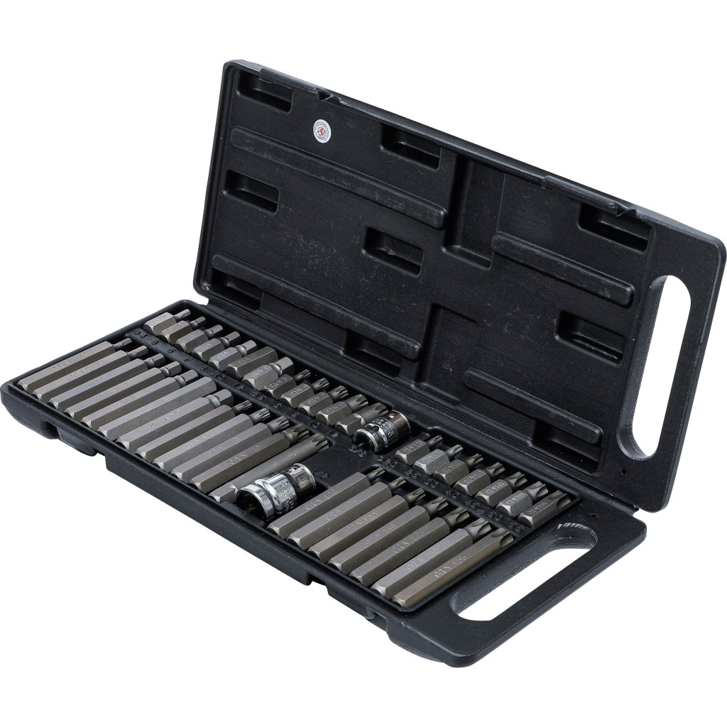 Ez a 40 darabos vegyes bitkészlet széles körű választékot kínál bitekből és adapterekből, így alkalmas különböző csavarozási és szerelési munkákhoz. Tartós, kompatibilis kialakítású, rövid (30 mm) és hosszú (75mm) biteket tartalmaz belső hatlapú, T-Star (Torx) és XZN (spline) kivitelben.