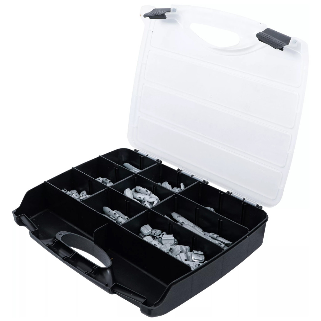 Ez a 320 darabos keréksúly készlet kifejezetten acélfelnikhez készült, és különböző méretű horganyzott keréksúlyokat tartalmaz a pontos kerékkiegyensúlyozás érdekében. A készlet többféle méretben érhető el, kiválóan alkalmas olyan műhelyek számára, amelyek különböző járművek szervizelését végzik.