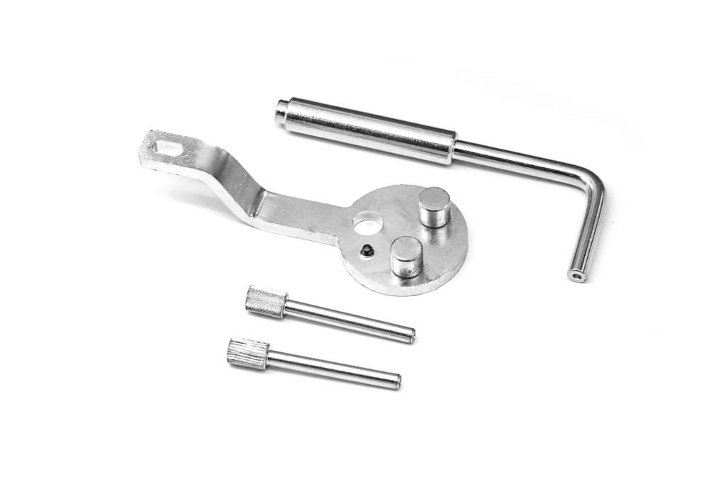 Vezérlésrögzítő 2,2-es (2006-2011) common rail dízelmotorokhoz lánchajtással. A rögzítőkészlet a főtengely és a lánckerekek megfelelő helyzetükben történő rögzítéséhez szükséges szerszámokból áll, hogy lehetővé váljon a vezérműlánc és a kapcsolódó alkatrészek cseréje.