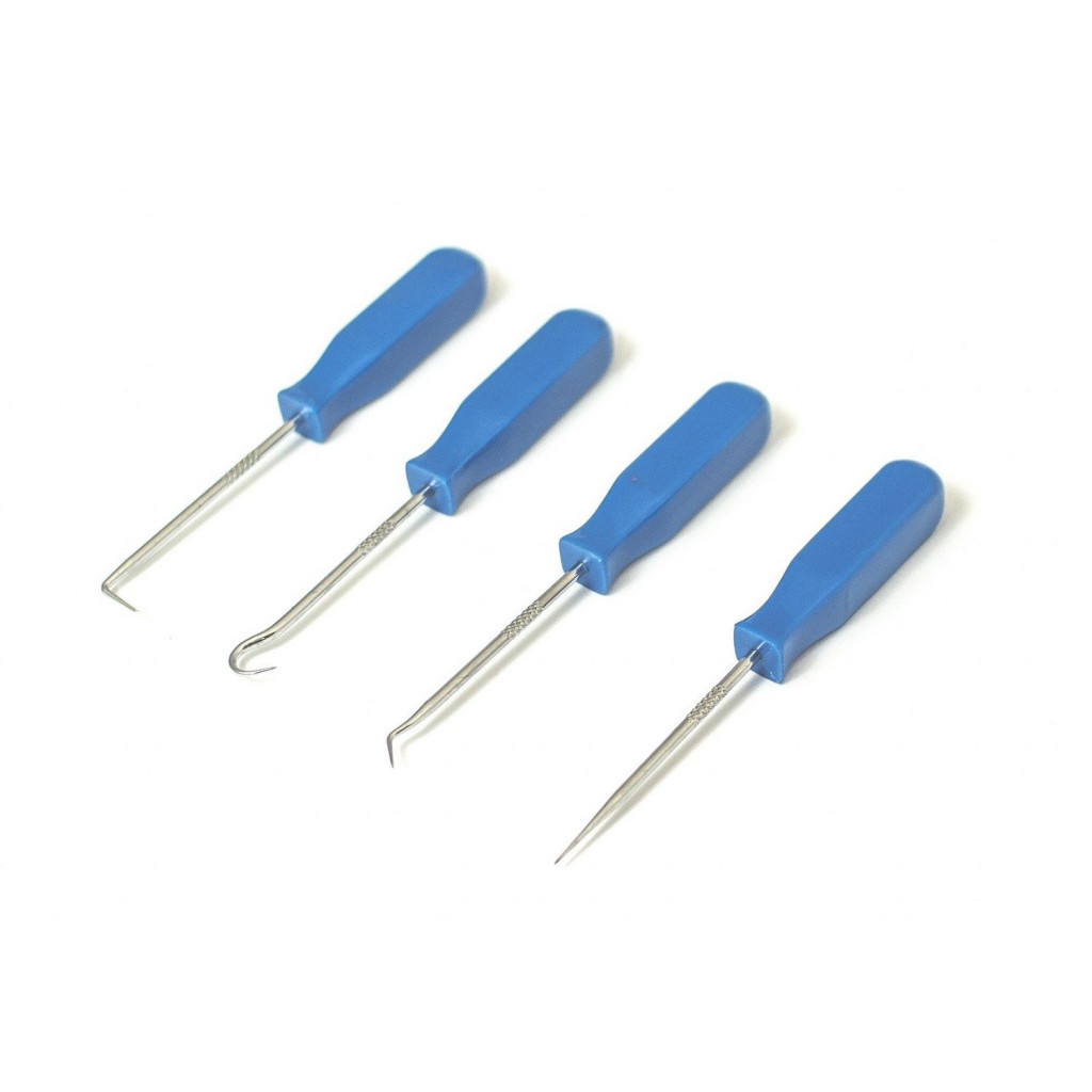 4 db-os kampó készlet. A kampók edzett és krómozott hegyekkel rendelkeznek. A fogantyú kiváló minőségű csúszásmentes anyagból készült. A szerszámok teljes hossza - 135mm.