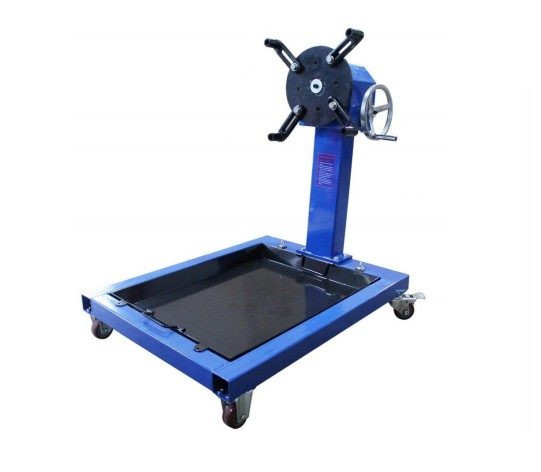 Műhelyi segéd a motorral való munkához. Négy mozgatható megfogója van, amelyek egy 360°-ban elforgatható lemezre vannak rögzítve. Masszív kerettel. A berendezés kerekekkel rendelkezik az állvány és a motor könnyű mozgatásához.