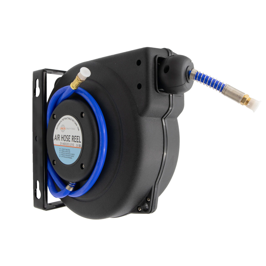 Használható pneumatikus eszközökkel. Automatikusan visszatekerheti a tömlőt a dobban található rugós mechanizmusnak köszönhetően. A tömlő a kívánt hosszúságban rögzíthető. A ház nagy szilárdságú műanyagból készült. Az elforgatható tartó lehetővé teszi a dob 180°-os elforgatását. Helytakarékosság érdekében falra vagy mennyezetre szerelhető.