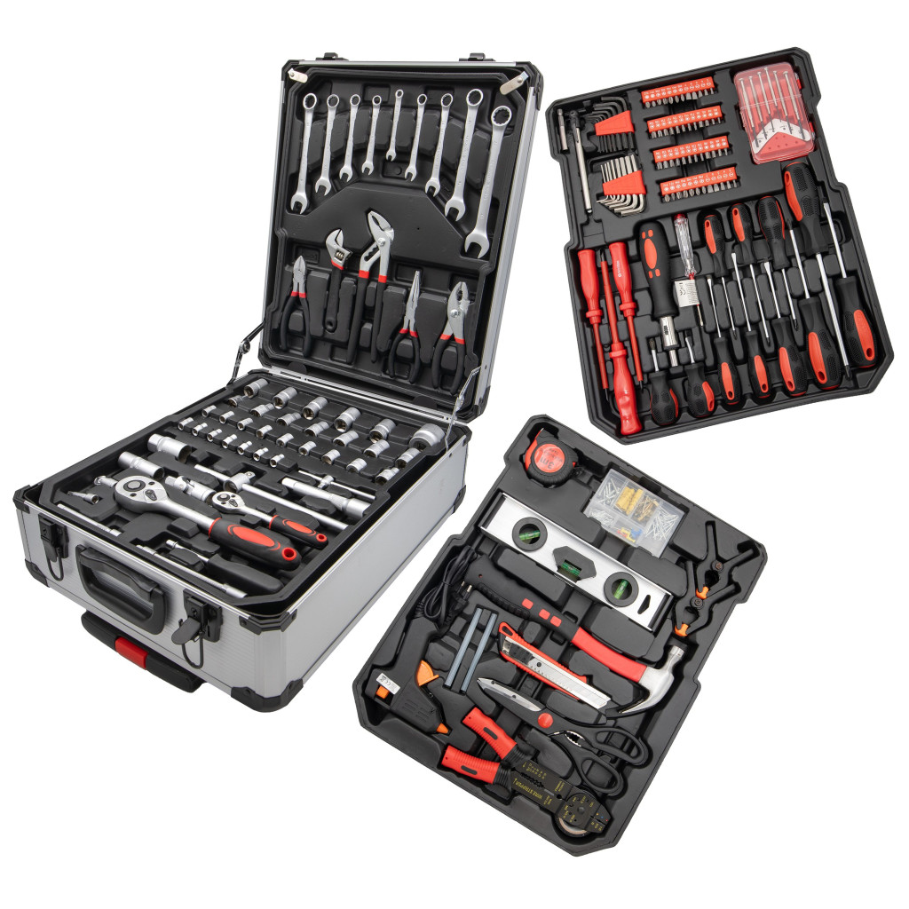 187 darabos szerszám készlet zárható, gurulós, zárható aluminium kofferben, 4 kivehető szerszám tároló tálcával.