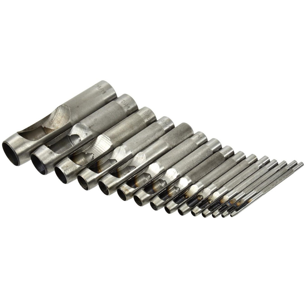 Ez a sokoldalú, 15 részes lyukasztókészlet kiváló eszköz profi felhasználók számára bőr, gumi és karton lyukasztásához. Kiváló minőségű szerszámacélból készült, minden egyes lyukasztó tartós és precíz kialakítású. A készlet széles mérettartományban, 2 mm-től egészen 22 mm-ig tartalmaz szerszámokat, így különböző projektekhez is rugalmasan használható. Tiszta, pontos furatok készítéséhez ideális, így nélkülözhetetlen kiegészítője minden műhelynek.
