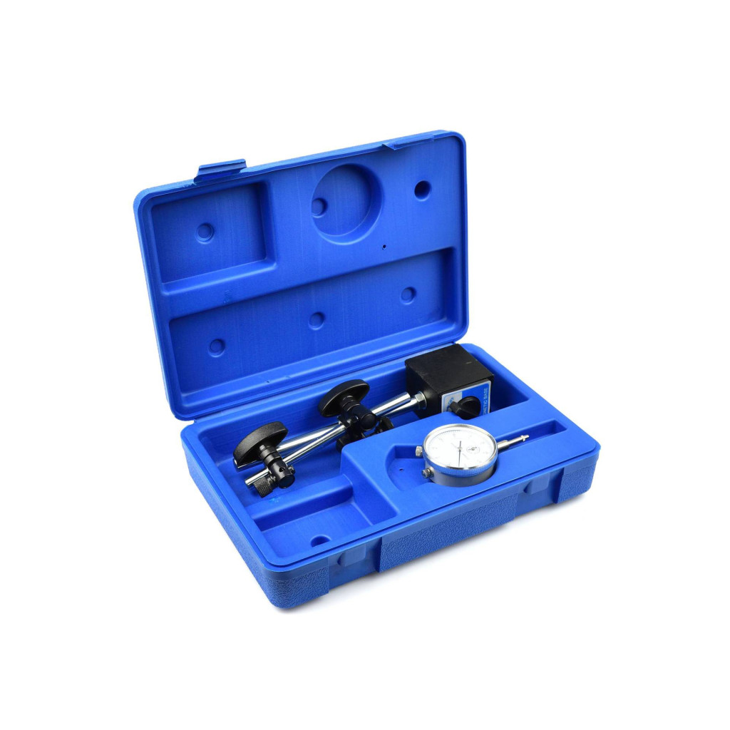 Precíziós számlapjelző 0-10mm-ig 0,01mm-es pontossággal, mágneses talpú kiszerelésben. A készlet a különböző elemek geometriai formáinak nagyon precíz ellenőrzésére és a többi komponens összeszerelésénél a kölcsönös helyzetük helyességének ellenőrzésére készült. A mágneses állvány BE/KI kapcsolóval rendelkezik, amely aktiválja a mágnest.