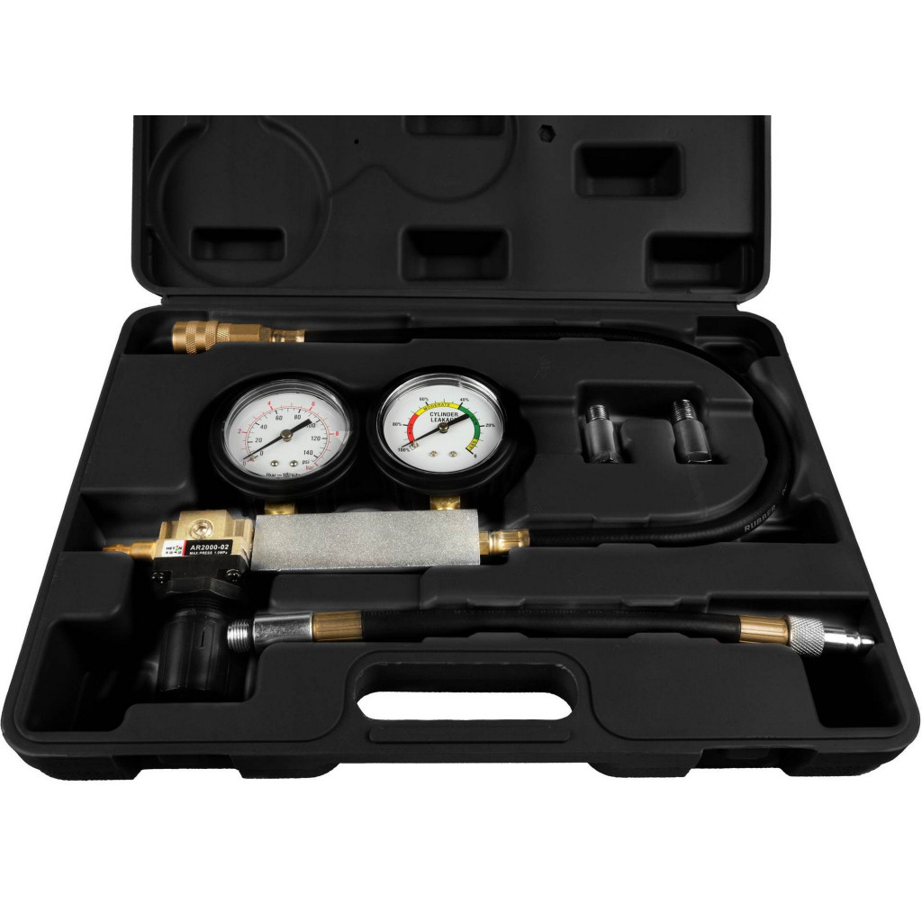 Ellenőrző műszer, amellyel gyorsan és egyszerűen diagnosztizálhatja a henger szivárgást. Lehetővé teszi a motor kopásának vizsgálatát azáltal, hogy sűrített levegőt juttat a hengerbe, és meghatározza a hengerszivárgás okozta nyomásesés százalékos mértékét. A teszter M12 x 1,25 és M14 x 1,5 gyújtógyertya-menetű benzinmotorokhoz használható. A teszter segítségével többek között kimutatható: dugattyúgyűrű sérülés, a befecskendező vagy a fúvóka sérülése, henger tömítés sérülése. Használja 90-100psi-s nyomással.