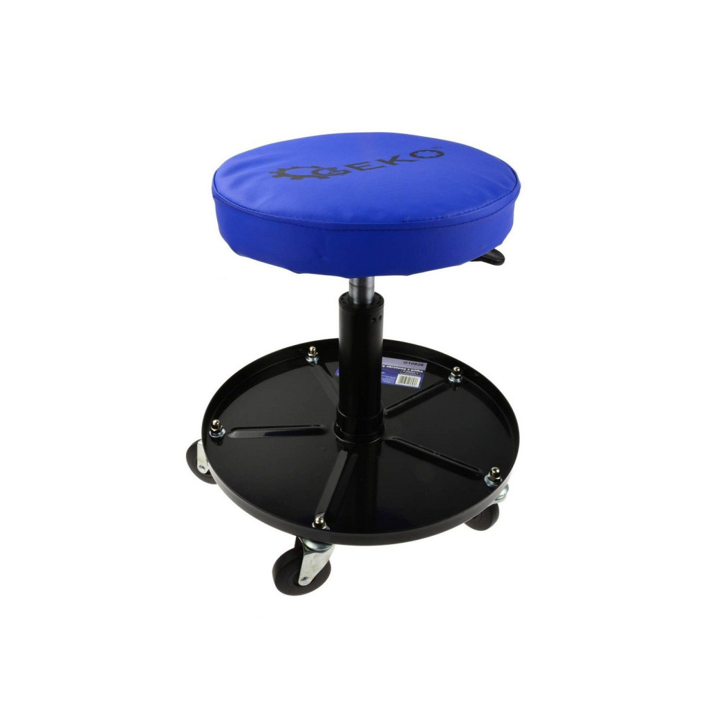 Acél guruló zsámoly 360°-ban elforgatható kerekekkel, teljesen párnázott üléssel és szerszámtálcával. Max. Terhelhetőség: 136kg.