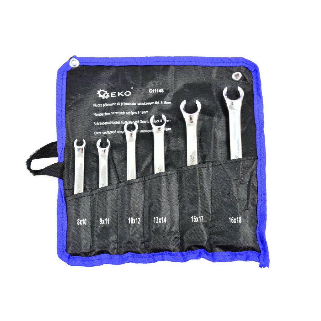 - A készlet 6db fékcsőkulcsot tartalmaz: 8x10, 9x11, 10x12, 12x14, 15x17, 16x18mm