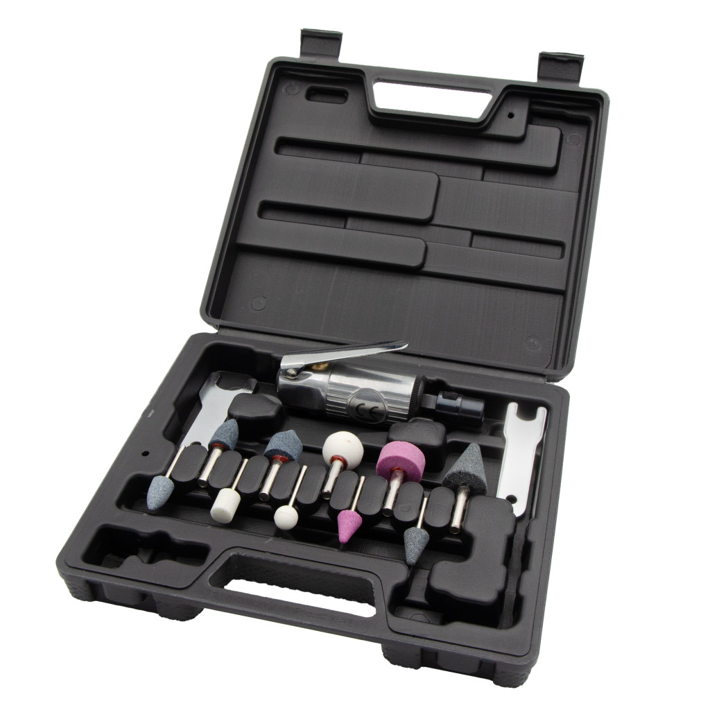 16 részes pneumatikus csiszoló készlet, kompozit motor, légcsatlakozás 1/4", max. fordulatszám 25000 ford./perc, max. nyomás 90PSI / 4CFM