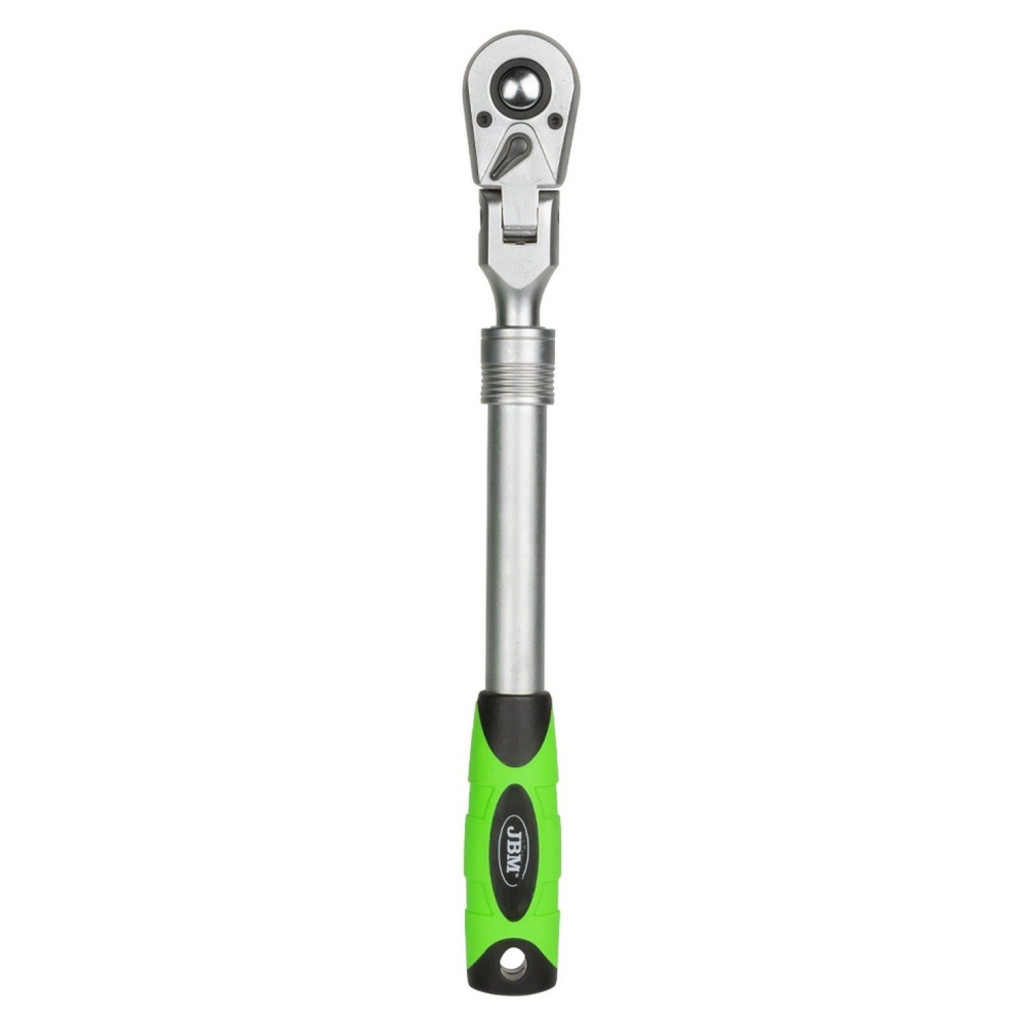 A markolat kihúzható, hogy megnövelje a szerszám elérési távolságát és nagyobb erőkart biztosítson. A feje 180°-ban elforgatható, hogy a nehezen elérhető csavarok se okozzanak problémát. A gyors kioldó mechanizmus lehetővé teszi a foglalatok gyors fel- és leszerelését. Az irányváltóval állítható, hogy feszítsen vagy lazítson. A fejben 72 fogas racsni van ami lehetővé teszi, hogy akár min. 5°-os eltolással is dolgozhasson.