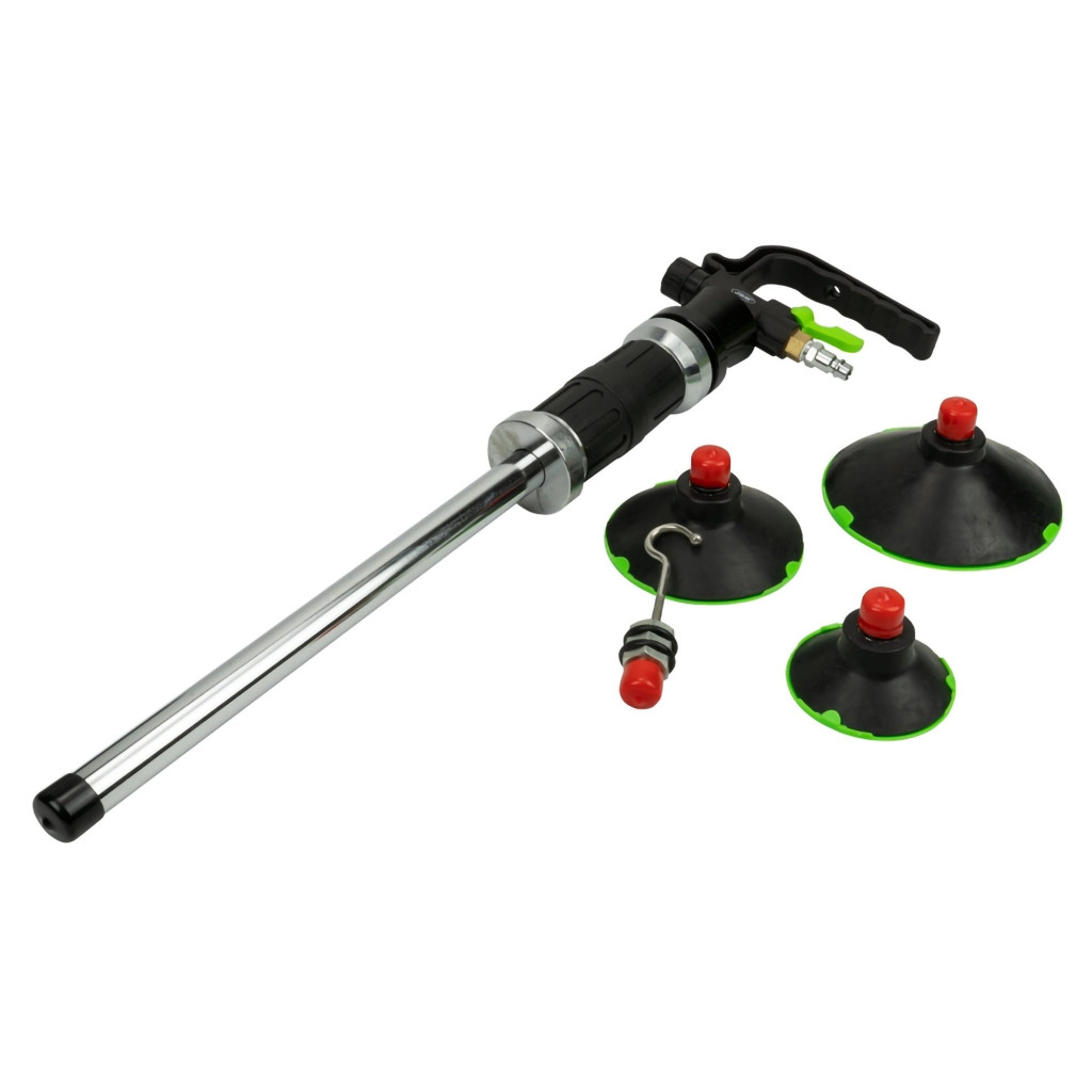 A pneumatikus csúszókalapács segítségével a legtöbb horpadás könnyen kihúzható a karosszériából. Azonnal eltávolítja a legtöbb horpadást anélkül, hogy kárt tenne a festésben. 3 különböző méretű tapadókoronggal és 1 kampóval rendelkezik, amelyek felhasználhatóak különböző horpadások javítására. Csatlakoztassa a csúszókalapácsot egy kompresszorhoz a magas húzóerő fenntartása érdekében. Minőségi anyagból készült, hosszú élettartamú használatra készült. Nagy teherbírású, praktikus kofferral kapható, amely segít a szerszámok védelmében, tárolásában és szállításában.