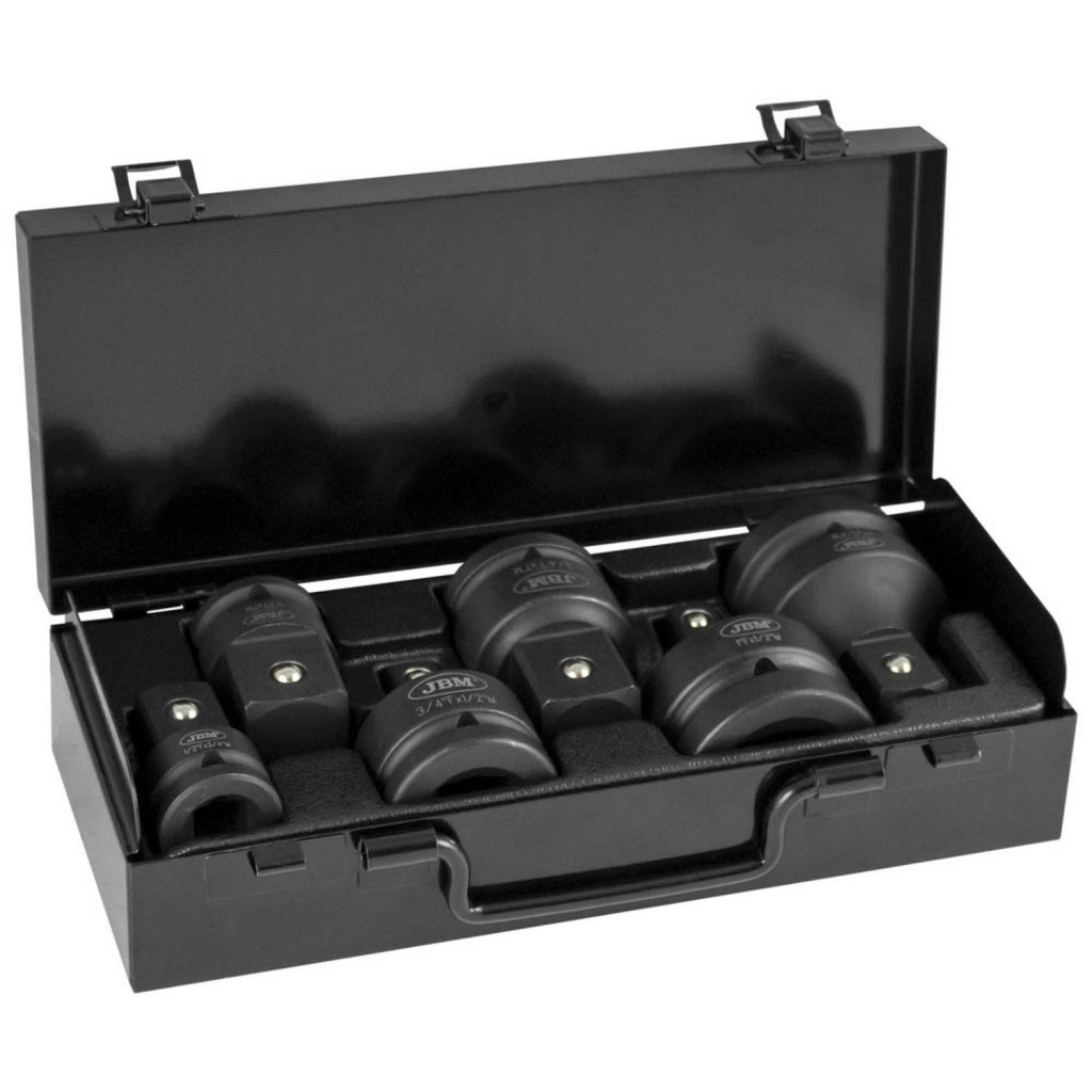 Gépi dugókulcs adapter készlet, 6db, méretek: 1”M - 1/2"F (50mm), 3/4"M - 1/2"F (48mm), 1"M - 3/4"F (63mm), 1/2"M - 3/4"F (85mm), 3/4"M - 1"F (69mm), 1/2"M - 1"F (70mm)