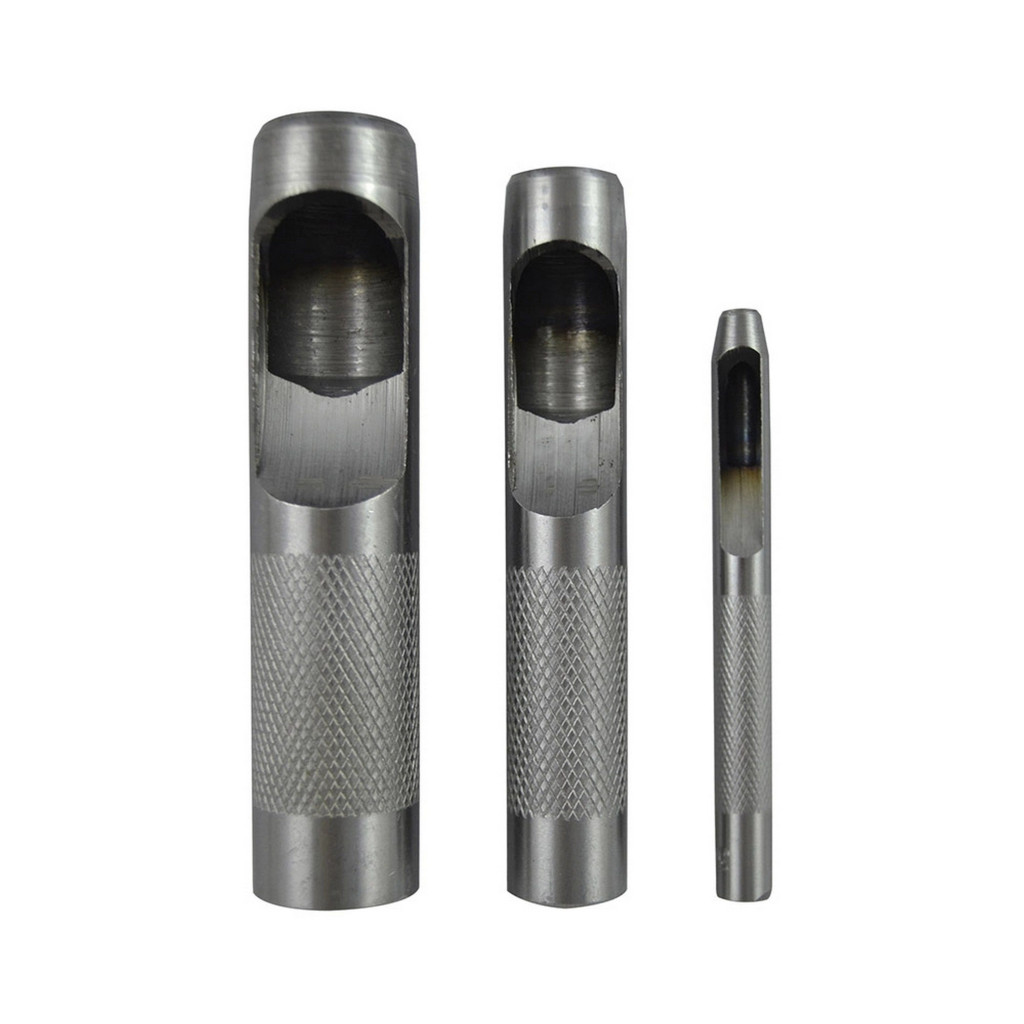 Lyukasztószerszám készlet, kör alakú. Edzett szénacélból készült. Tartós, éles, jól edzett, kerek vágóéllel, recézett testtel. Lyukasztáshoz bőrbe, tömítésekbe, műanyagokba, szövetbe, papírba. Ajánlott szabászathoz, hobbihoz, kézművességhez, modellezéshez, otthoni javításhoz vagy bármilyen egyedi bőrmunkához, stb. Egyszerűen helyezze a szerszámot az anyagra, oda, ahová a lyukat szeretné, és üsse le egy kalapáccsal.