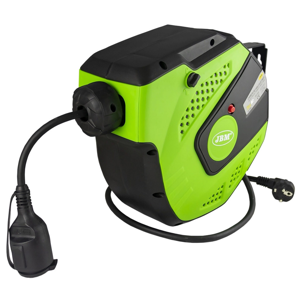 A tápkábel orsója gyorsan és simán visszahúzódik a gombnyomással irányított visszatekerő mechanizmusnak köszönhetően, hogy elkerülhesse a kábel törését és a gubancokat. A racsnis szerkezet bármilyen hosszúságban rögzíti a vezetéket. Tökéletes a garázs mennyezetére akasztani vagy falra szerelni. Könnyedén húzza és engedi a kábelt bármilyen irányba. Munkaterületet szabadít fel, hisz a tárolása gyerekjáték. Kerülje el az összekuszálódott vezetékeket és a botló akadályokat.
