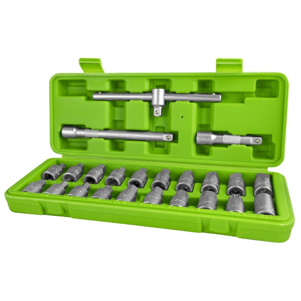 23db-os olajleeresztő csavar kulcs készlet. Ideális a legtöbb autó és kisteherautó olajleeresztő csavarjához. A koffer több különböző méretű kiegészítőt tartalmaz.