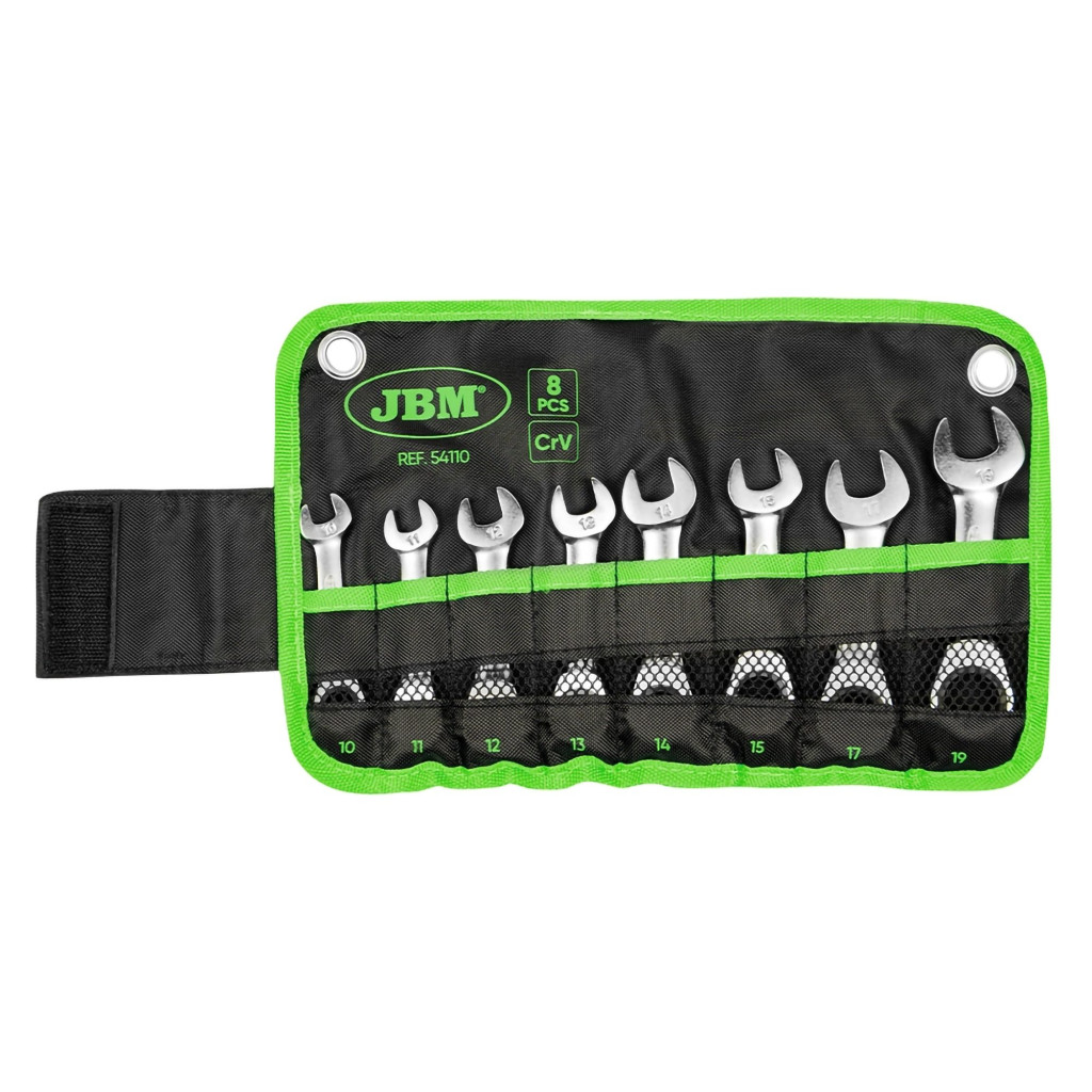 8db rövid racsnis villás és csillag kulcs készlet. Króm-vanádium acélból készült. A 12 pontos racsni belül 72 foggal rendelkezik, ami lehetővé teszi a hatékony munkavégzést akár min. 5°-os elforgatással is.