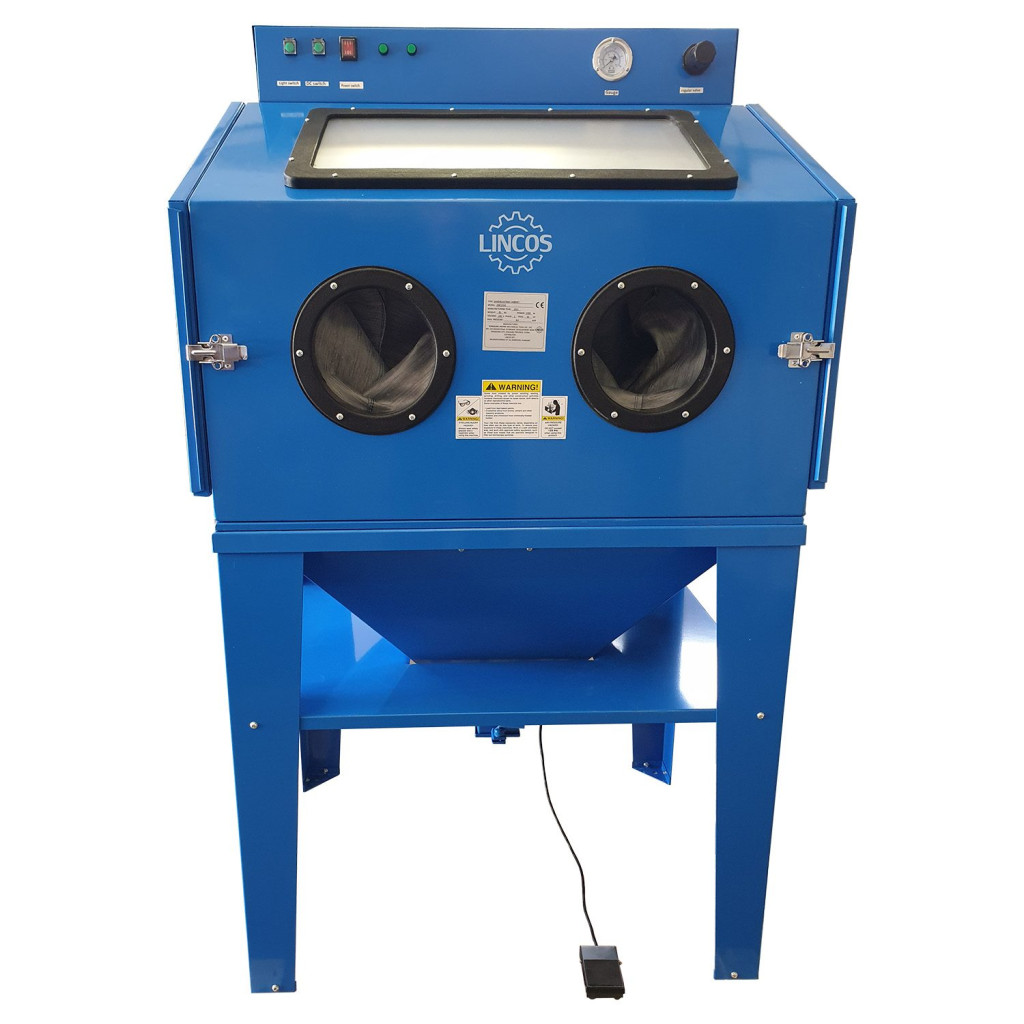 Homokfúvó szekrény 350l, 2 oldalajtóval, porelszívóval