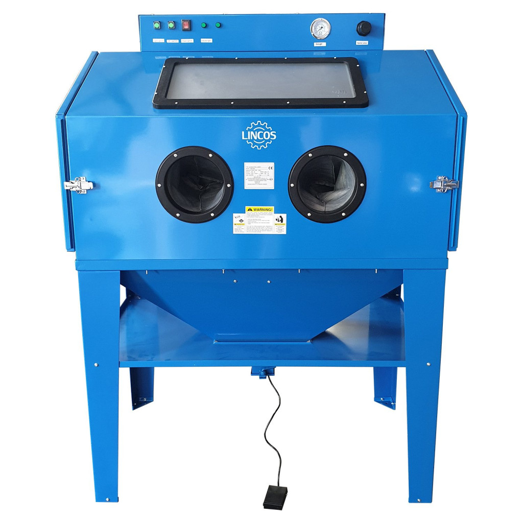 Homokfúvó szekrény 450l, 2 oldalajtóval, porelszívóval