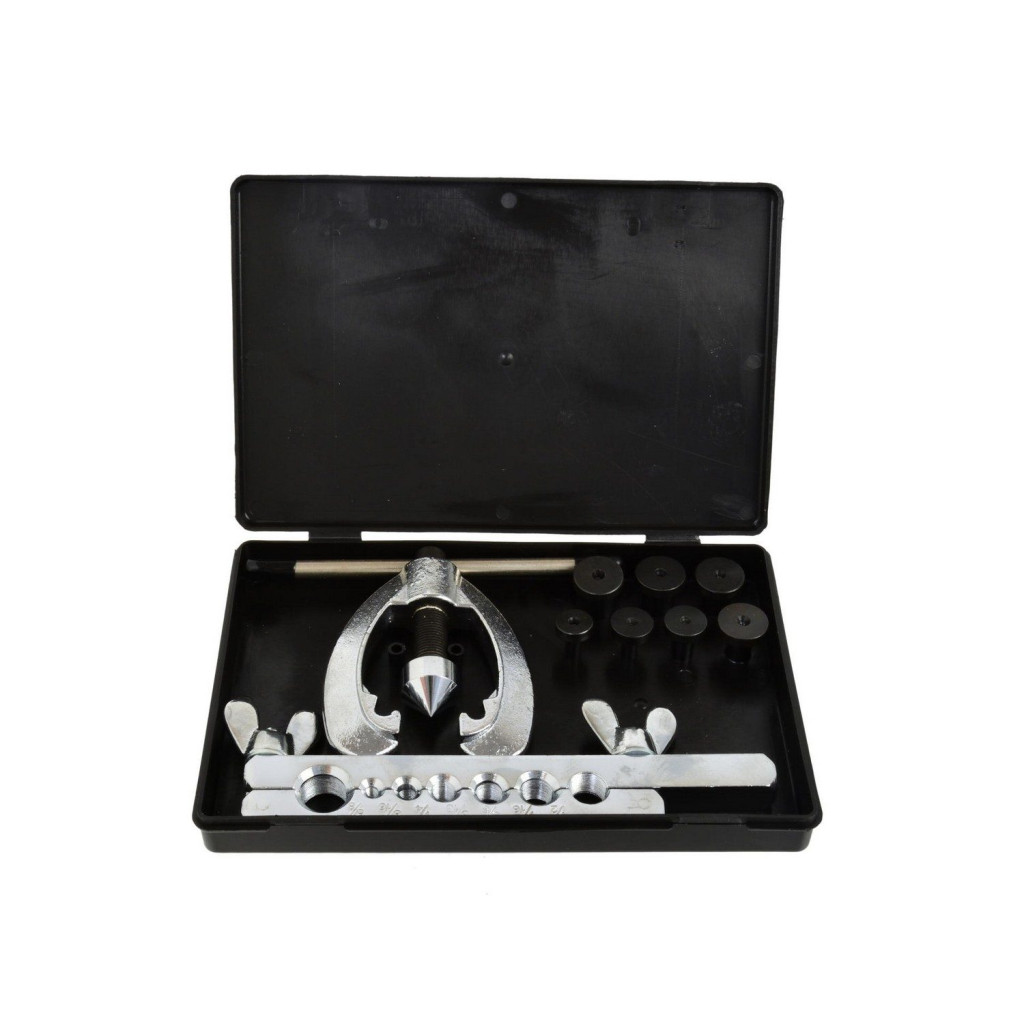 Ez a készlet használható hagyományos, kettős, valamint ISO peremek elkészítéséhez. Használható réz, alumínium, acél csövekkel, maximum 1mm vastagságú csőfalakkal. Kifejezetten fékvezetékekhez tervezve. Kofferban kapható.