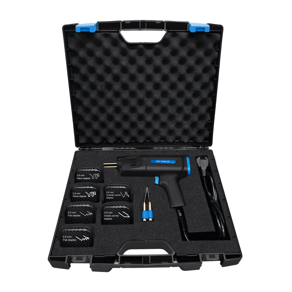 Műanyag javításhoz és hegesztéshez. Autó lökhárító, műszerfal, lámpatartó, műanyag gyűrű, sárvédő, légterelő, kilincsek, fényszórók, keréktárcsák, egyéb műanyag felszerelések, mindennapi műanyag termékek javítására, forrasztására, megerősítésére, stb. A kapcsok forrasztás után könnyen kihúzhatóak és nem akadnak be. Csak válassza ki a kívánt kapcsot, helyezze be a sárgaréz tartóba, nyomja a gombot, és várjon néhány másodpercet, amíg a kapcsok lassan beleolvadnak a műanyagba, majd távolítsa el a gépet és vágja le a kapcsok lábát. A termékek megfelelnek a nemzetközi minőségi szabványnak, CE/EMC, CE/LVD, UKCA, ROHS, REACH, PAHS tanúsítványokkal a TUV által hitelesített.