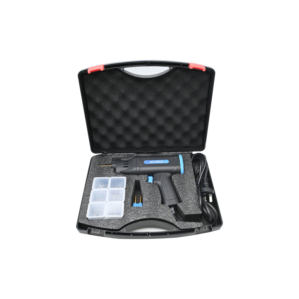 Műanyag javításhoz és hegesztéshez. Autó lökhárító, műszerfal, lámpatartó, műanyag gyűrű, sárvédő, légterelő, kilincsek, fényszórók, keréktárcsák, egyéb műanyag felszerelések, mindennapi műanyag termékek javítására, forrasztására, megerősítésére, stb. A kapcsok forrasztás után könnyen kihúzhatóak és nem akadnak be. Csak válassza ki a kívánt kapcsot, helyezze be a sárgaréz tartóba, nyomja a gombot, és várjon néhány másodpercet, amíg a kapcsok lassan beleolvadnak a műanyagba, majd távolítsa el a gépet és vágja le a kapcsok lábát. A termékek megfelelnek a nemzetközi minőségi szabványnak, CE/EMC, CE/LVD, UKCA, ROHS, REACH, PAHS tanúsítványokkal a TUV által hitelesített.