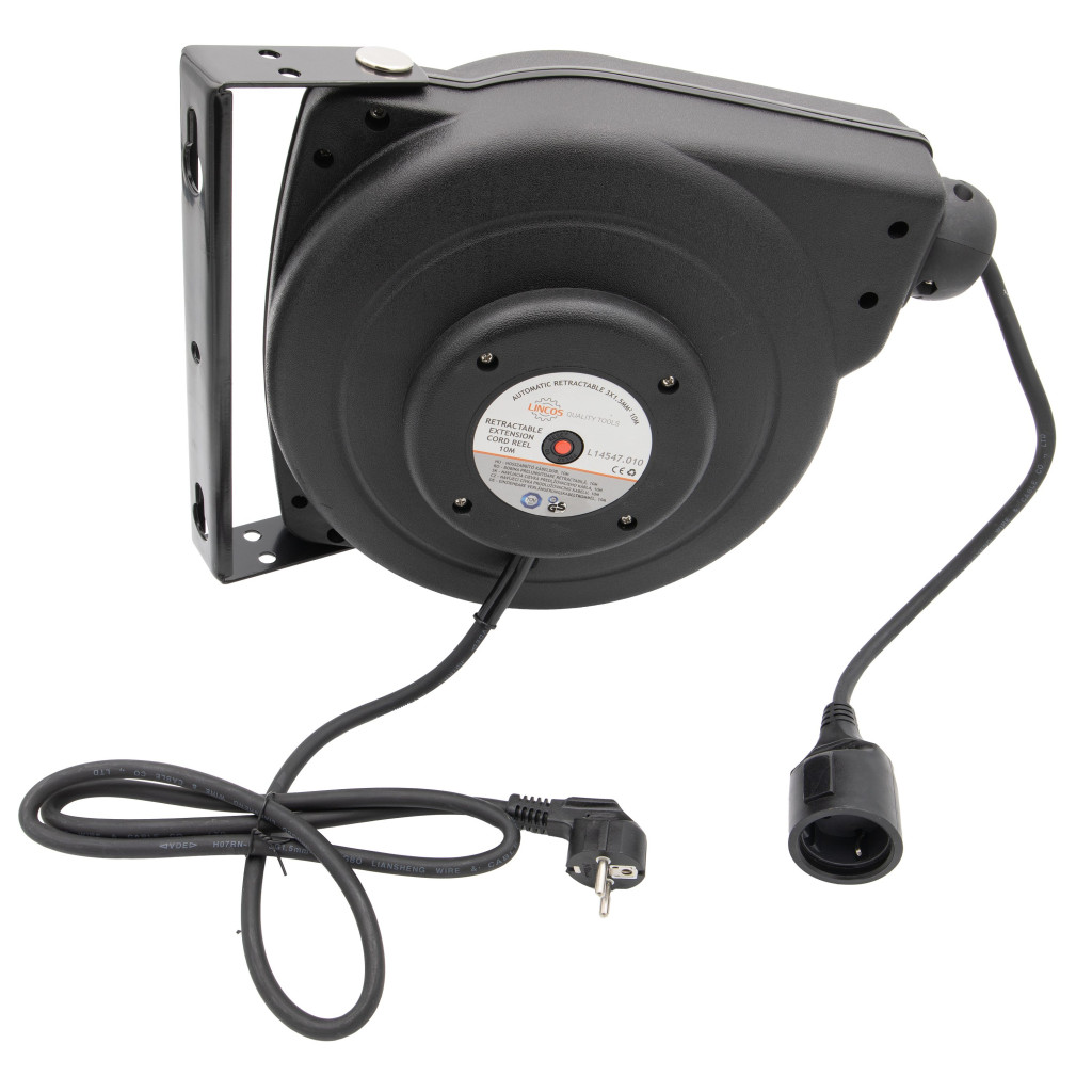 A tápkábel irányítottan, gyorsan és simán visszahúzódik a visszatekerő mechanizmusnak köszönhetően. Emiatt a kábel nem fog megtörni vagy összegubancolódni. A racsnis rendszer bármilyen hosszúságban rögzíti a vezetéket, és lehetővé teszi a gyors tárolást. Helytakarékosság érdekében falra és mennyezetre szerelhető.