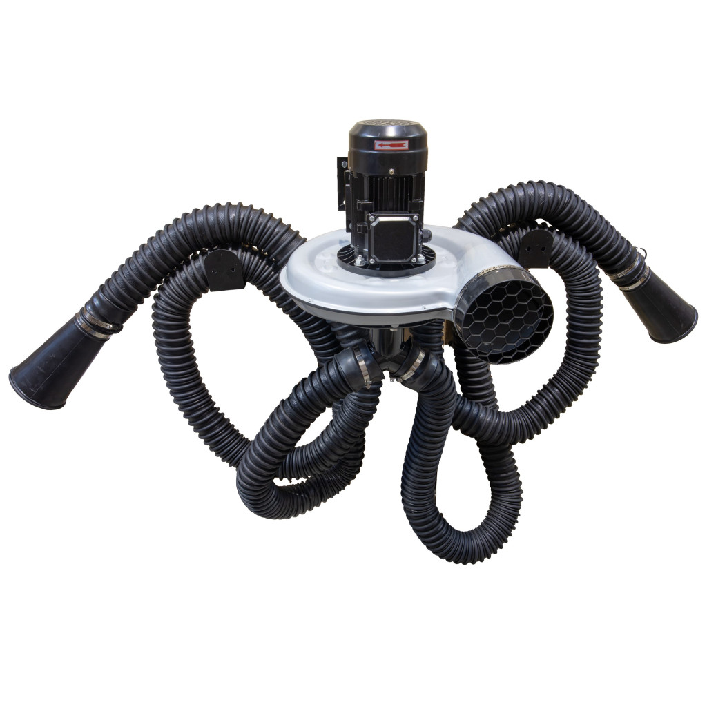 A Simple Direct Extractor ideális szellőztető megoldás kis és közepes méretű műhelyek számára. Ez az ikertömlős rendszer alkalmas a kipufogógázok elszívására kettős kipufogós járművekből, vagy ha egyidejűleg két különböző egy-kipufogós járművön dolgozik. Kompakt kialakítása lehetővé teszi a gyors és egyszerű felszerelést falra vagy mennyezetre, értékes munkaterületet takarítva meg. A ütésálló, 76 mm átmérőjű tömlővel felszerelve, amely akár 4 méterig is megnyúlik, ez az elszívó nagyobb hatótávolságot és rugalmasságot kínál az álló járművek kipufogórendszerei számára. A kerek, felcsúsztatható gumi fúvóka biztonságos illeszkedést biztosít a különböző gépjárművek kipufogóihoz, biztosítva a káros füstök hatékony elszívását. Az egység maximálisan 120 mm-es kipufogócső átmérőjűt támogat, ami elősegíti az optimális légáramlást. A robusztus, 400 V/50 Hz/3 fázisú árammal működő, 0,55 kW-os motorral meghajtott elszívó megbízható, hatékony teljesítményt nyújt alacsony üzemeltetési költségek mellett. Ez funkcionális és megfizethető választássá teszi minden műhely számára, amely a levegő minőségének és biztonságának javítását célozza.