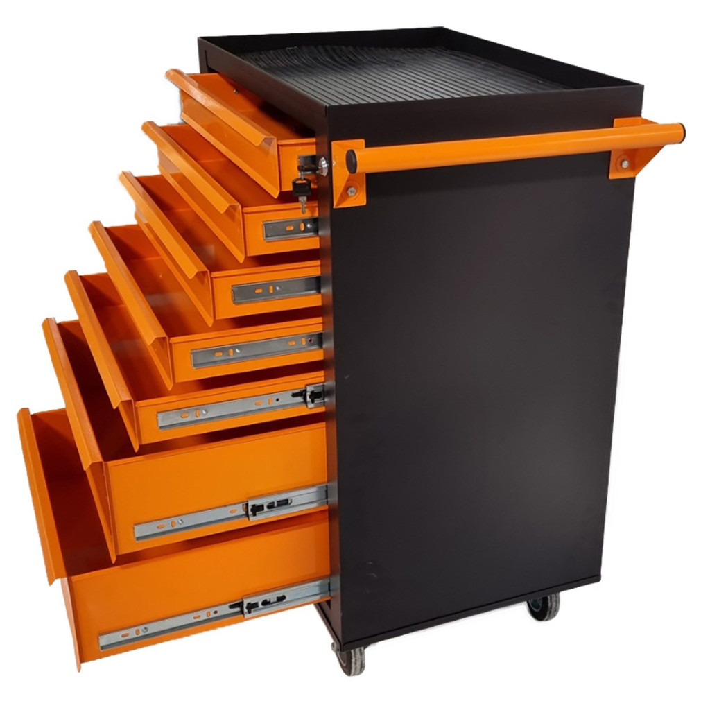 A szerszámos kocsi 7db fiókkal rendelkezik. Különböző fiókmélységeinek köszönhetően bármilyen szerszám tárolására alkalmas. Zárható kivitelű. Tökéletesen átláthatóan tárolhatóak a szerszámok és szerelési kellékek.