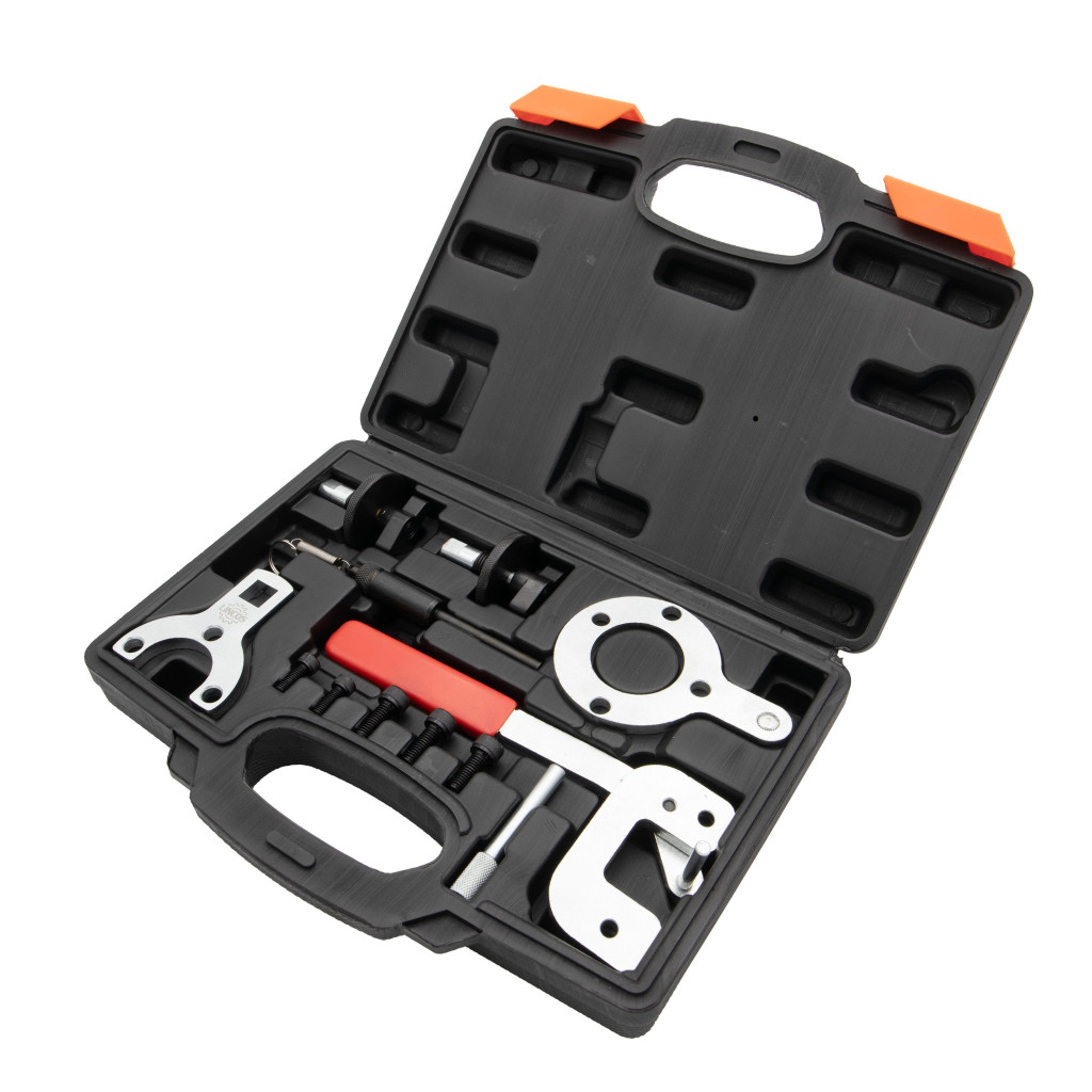 A készlet alkalmas vezérlés beállítására és ellenőrzésére. Dízel 1.3 Ford, Fiat, Suzuki, GM 1.3 motorokhoz alkalmas. 12db-os készlet, tároló dobozzal.