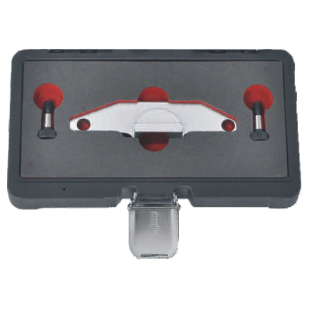 A speciális célszerszám alkalmas a vezérműtengely rögzítésére VW Golf, Bora, New Beetle és Seat Cordoba, Ibiza, Inca, Leon, Toledo (99-06) 1.9 TDI motorral szerelt járműveknél. A készletben megtalálható a 2db rögzítő csavar és a rögzítő szerszám.