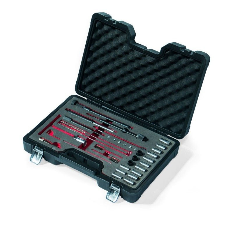 A készlet alkalmas dízel injektor fészek felújítására, injektor fészek és furat, valamint izzítógyertya fészek tisztításra is, a marók segítségével.