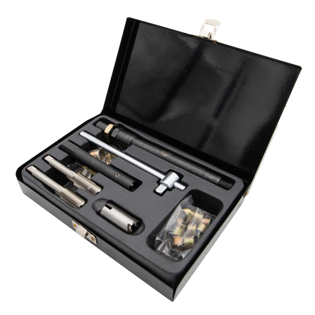 A gyújtógyertya menet javító készlet olyan eszköz, amely segít helyreállítani a sérült gyújtógyertya menetet a motorblokkban vagy a hengerfejben. A gyújtógyertya menetei néha sérülhetnek vagy elkopnak, amelyek nehezítik vagy akár lehetetlenné teszik a gyújtógyertyák cseréjét vagy eltávolítását. Ebben az esetben a gyújtógyertya menet javító készlet nagyon hasznos lehet, mert lehetővé teszi a sérült menet helyreállítását, és megakadályozza a drága javításokat vagy a motorblokk vagy hengerfej cserejét.