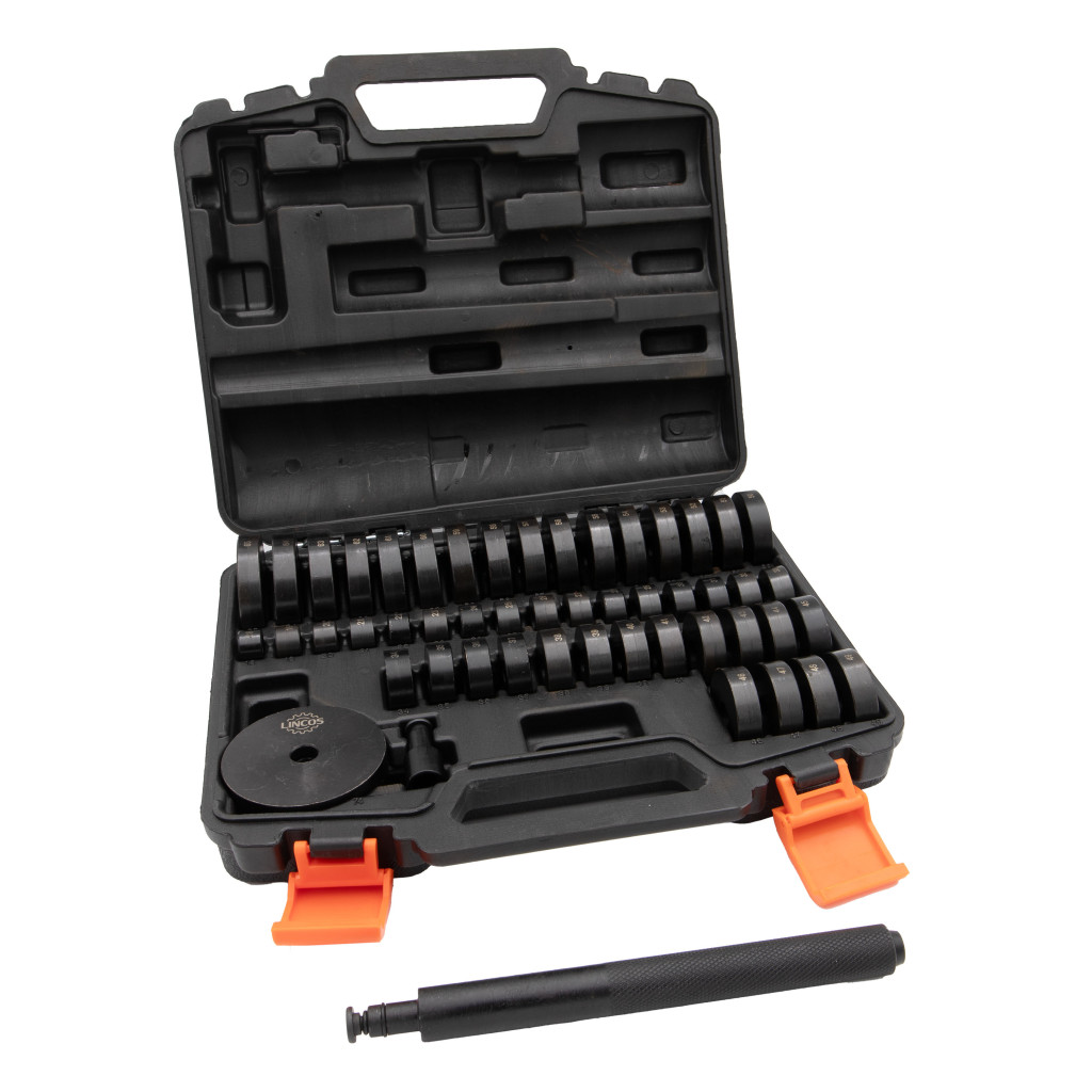 A készlet különféle rögzítőbetéteket tartalmaz, amelyek segítségével a csapágyakat a helyükre nyomják, vagy eltávolítják a rögzítési helyükről. A megfelelő méretű és típusú rögzítőlap használata fontos annak biztosítása érdekében, hogy a csapágyak megfelelően legyenek felszerelve és biztonságosan a helyükön maradjanak. Ez a készlet megkönnyíti és hatékonyabbá teszi a csapágyak be- és kiszerelését.