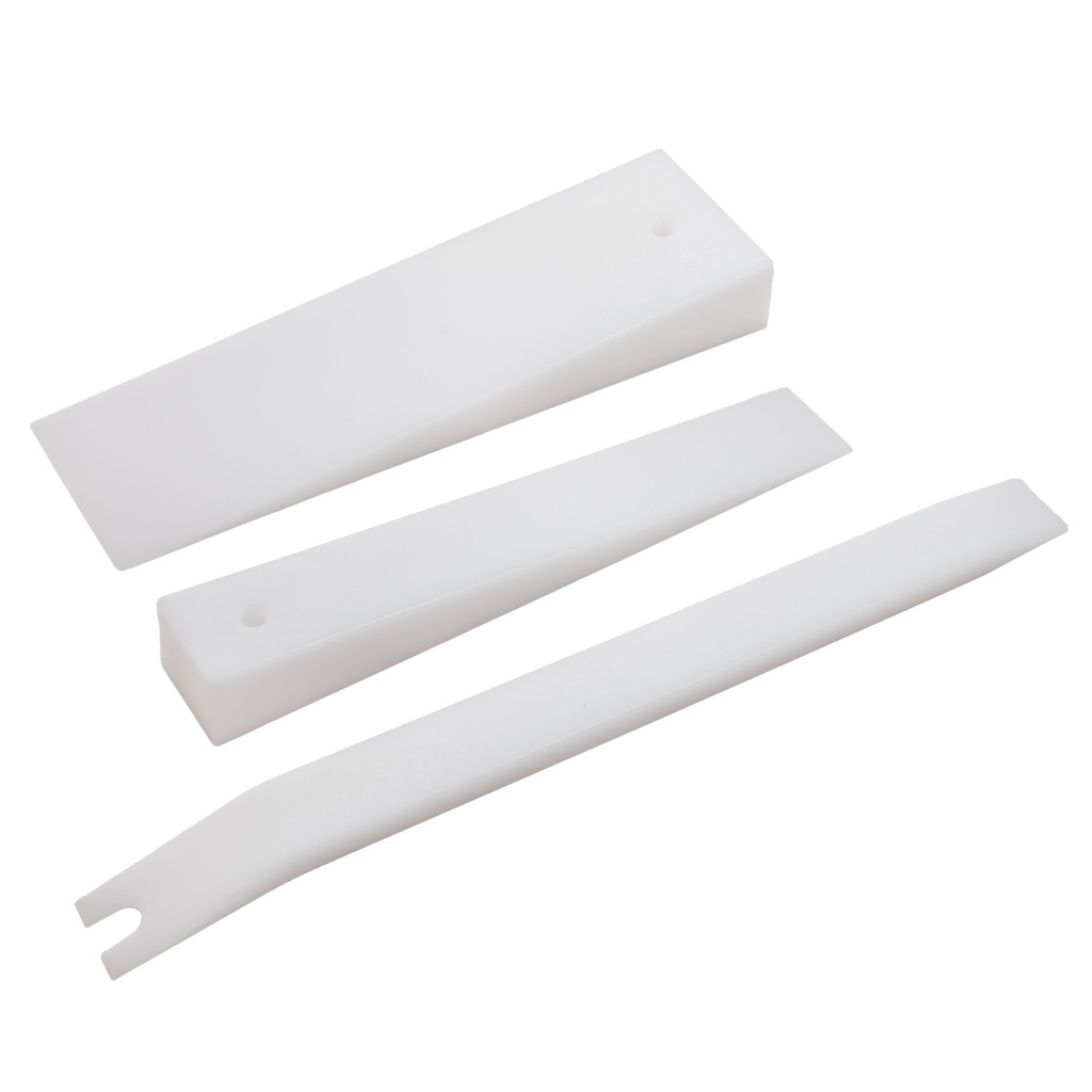 Ezeknek az eszközöknek a kialakítása és anyaga lehetővé teszi a műanyag kárpitrögzítők pontos és kíméletes eltávolítását. Kifejezetten úgy lettek kialakítva, hogy szűk helyekre illeszkedjenek, és biztonságosan megragadják a rögzítőelemeket, minimálisra csökkentve a környező panelek vagy a kárpit sérülésének kockázatát az eltávolítási folyamat során.